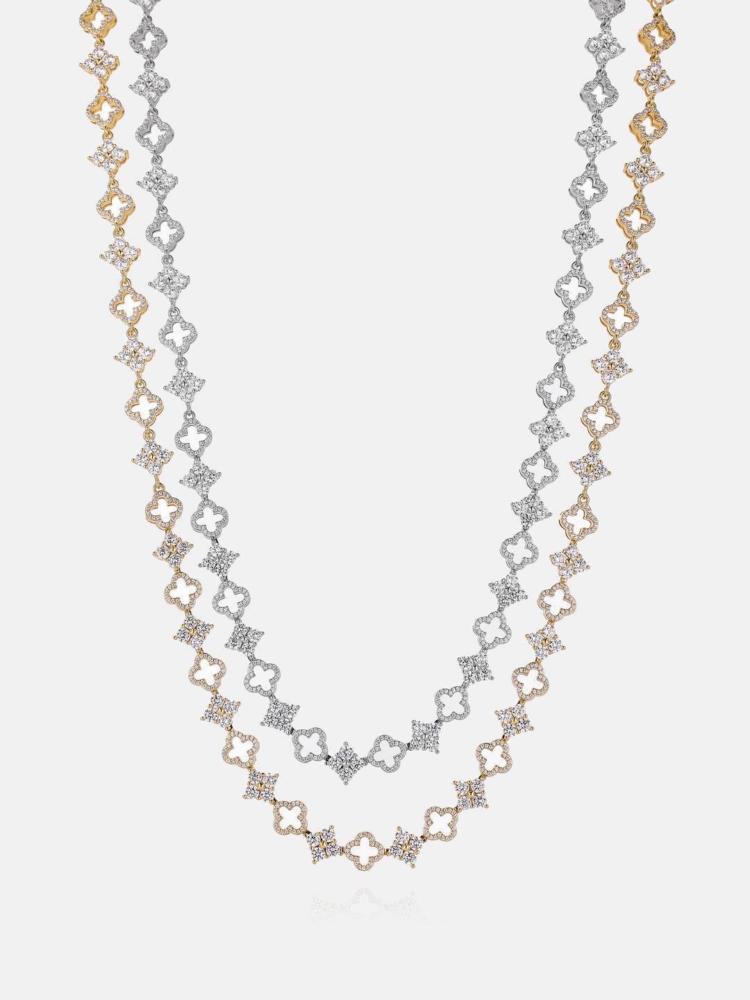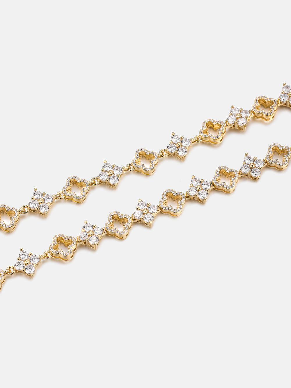 White Moissanite Green Marquise Gem Clover Tennis Chain