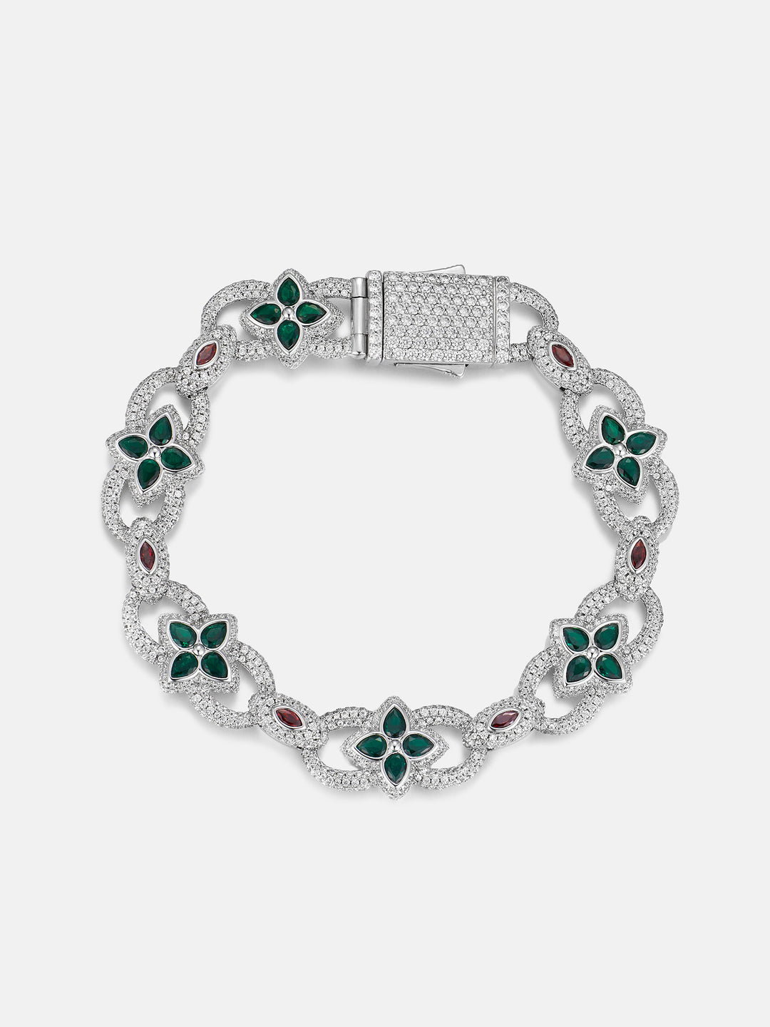 Two Tone Mixed-Cut Gem & Moissanite Clover Link Bracelet