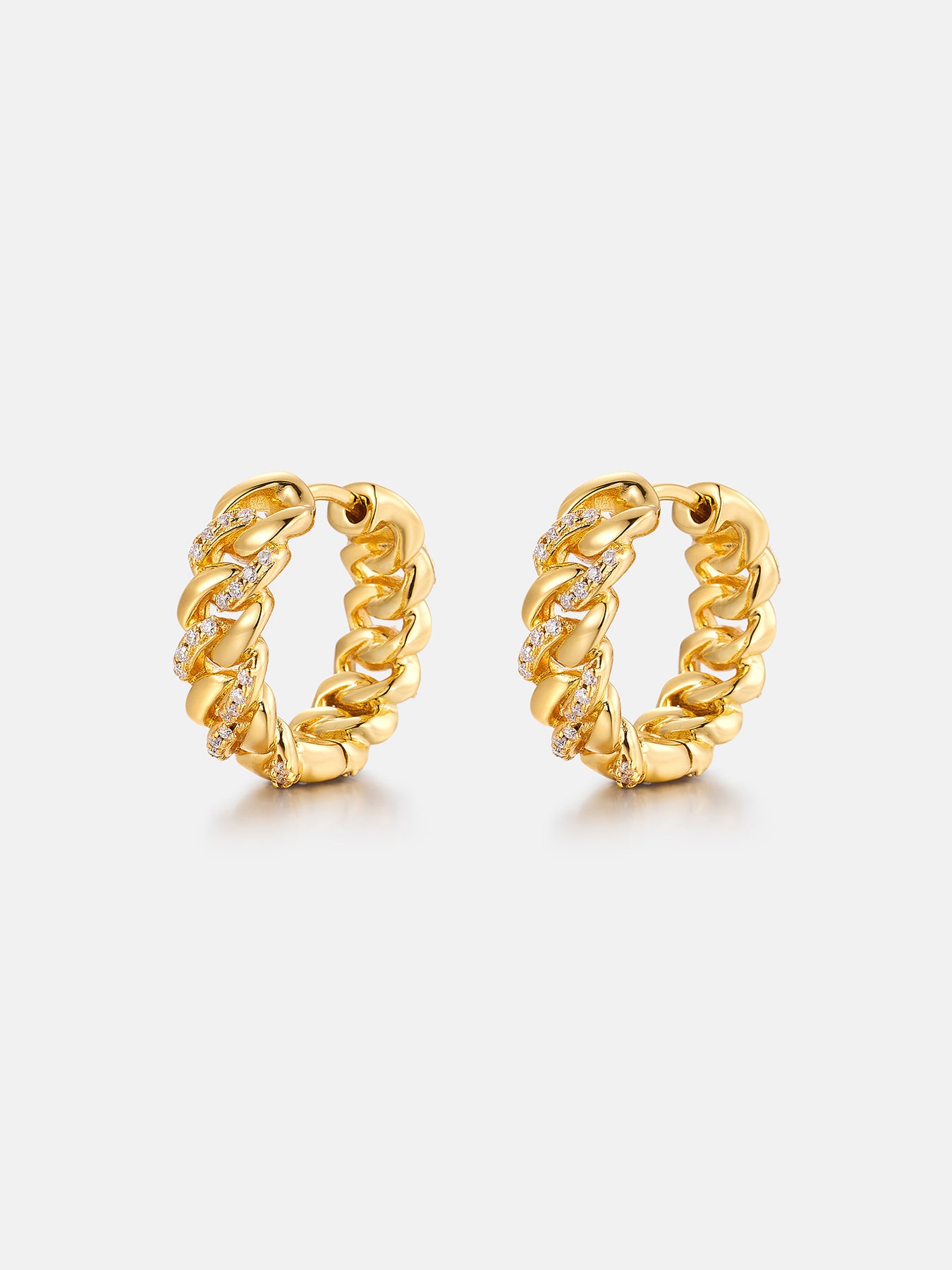 14K Solid Gold Moissanite Link Chain Hoop Earrings