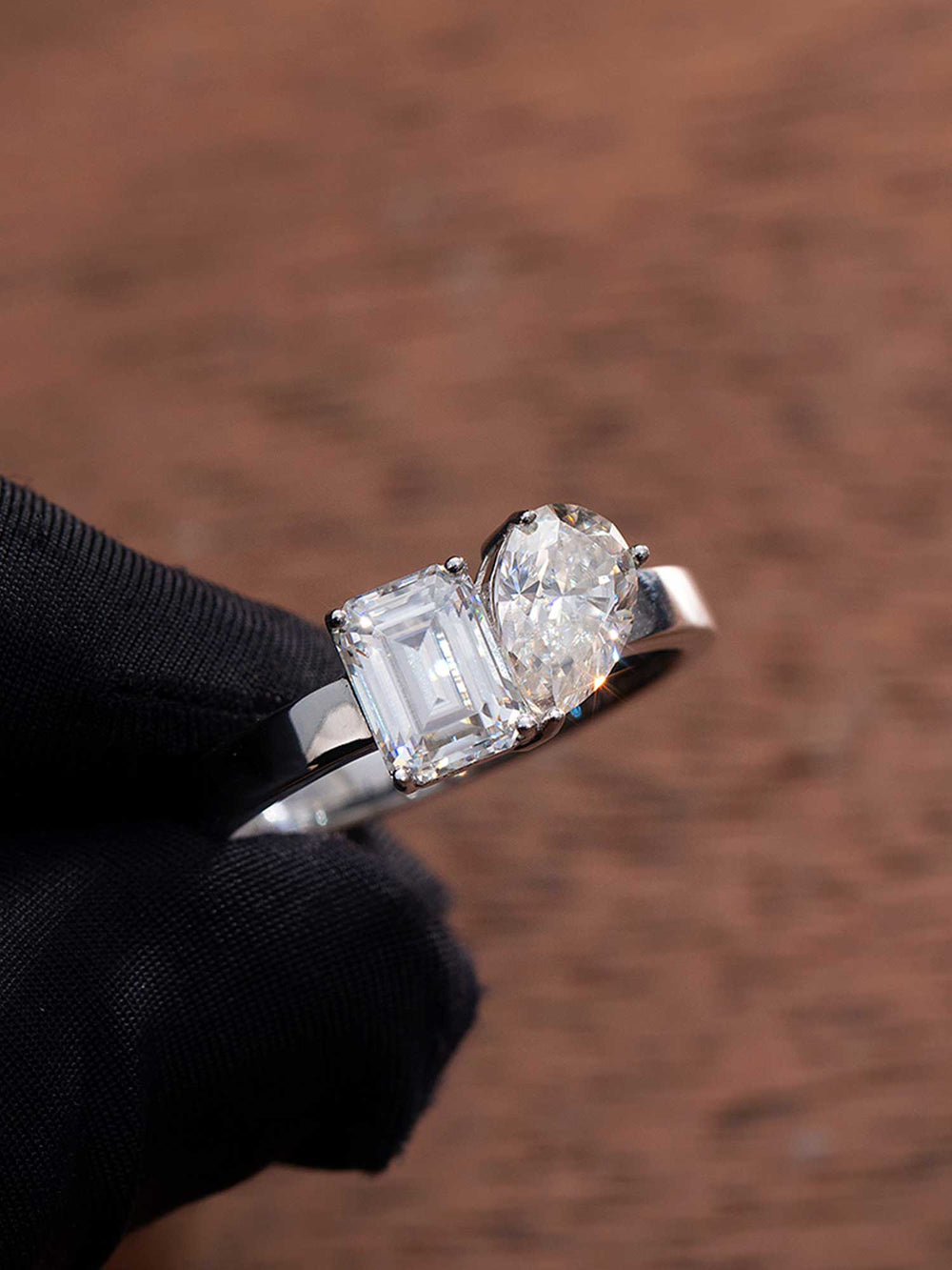 Made To Order 3.5 CTW Emerald & Pear Cut Engagement Ring