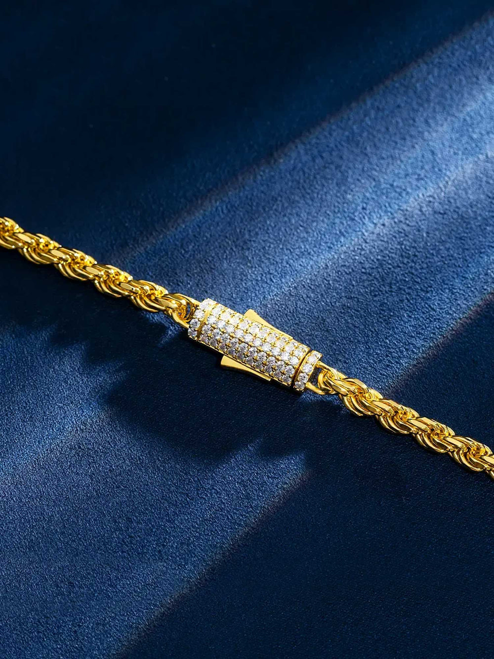 Italian 5mm Rope Bracelet Or Chain with Moissanite Clasp