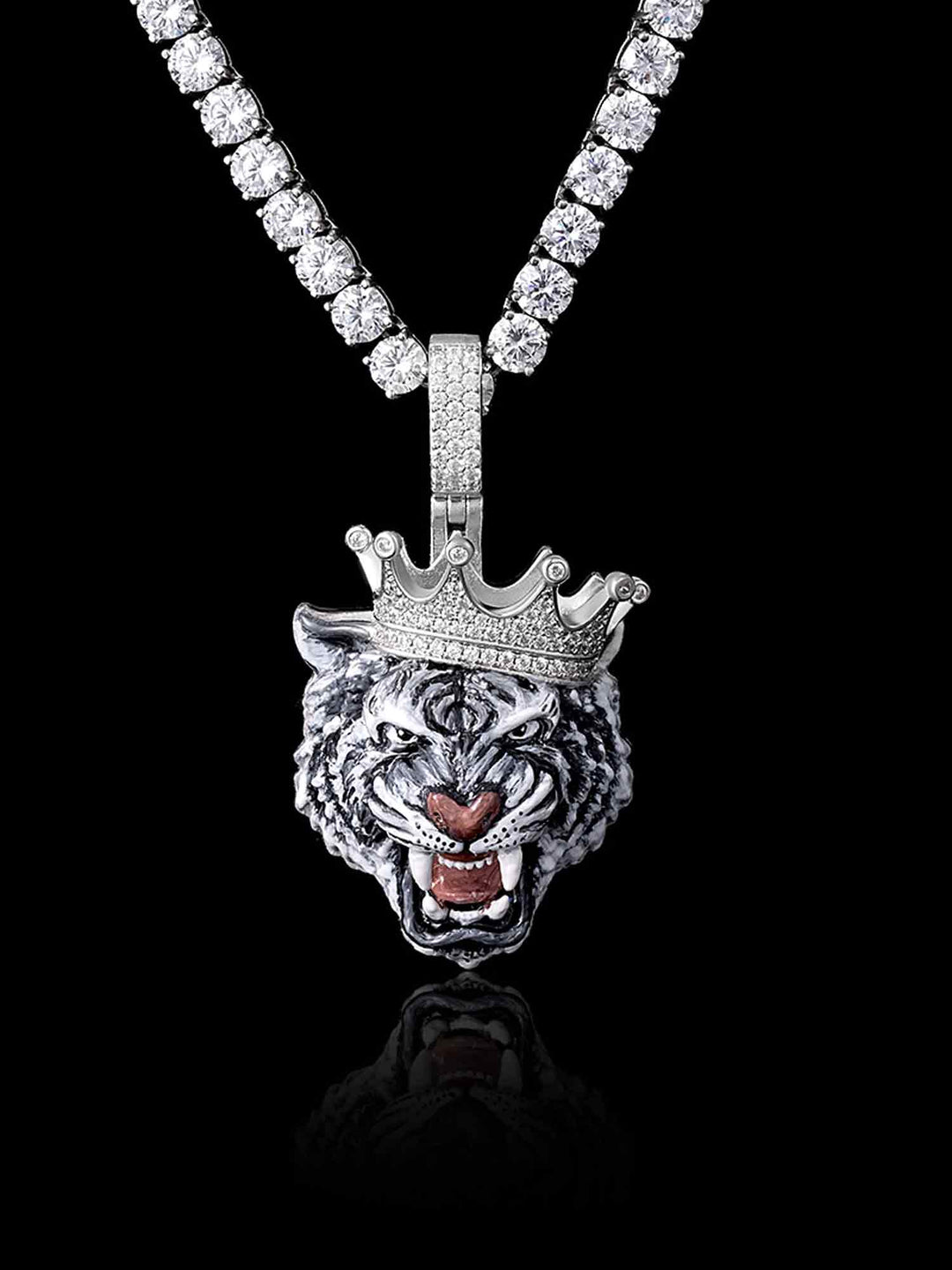 Moissanite Enamel Half White Half Orange Tiger Pendant