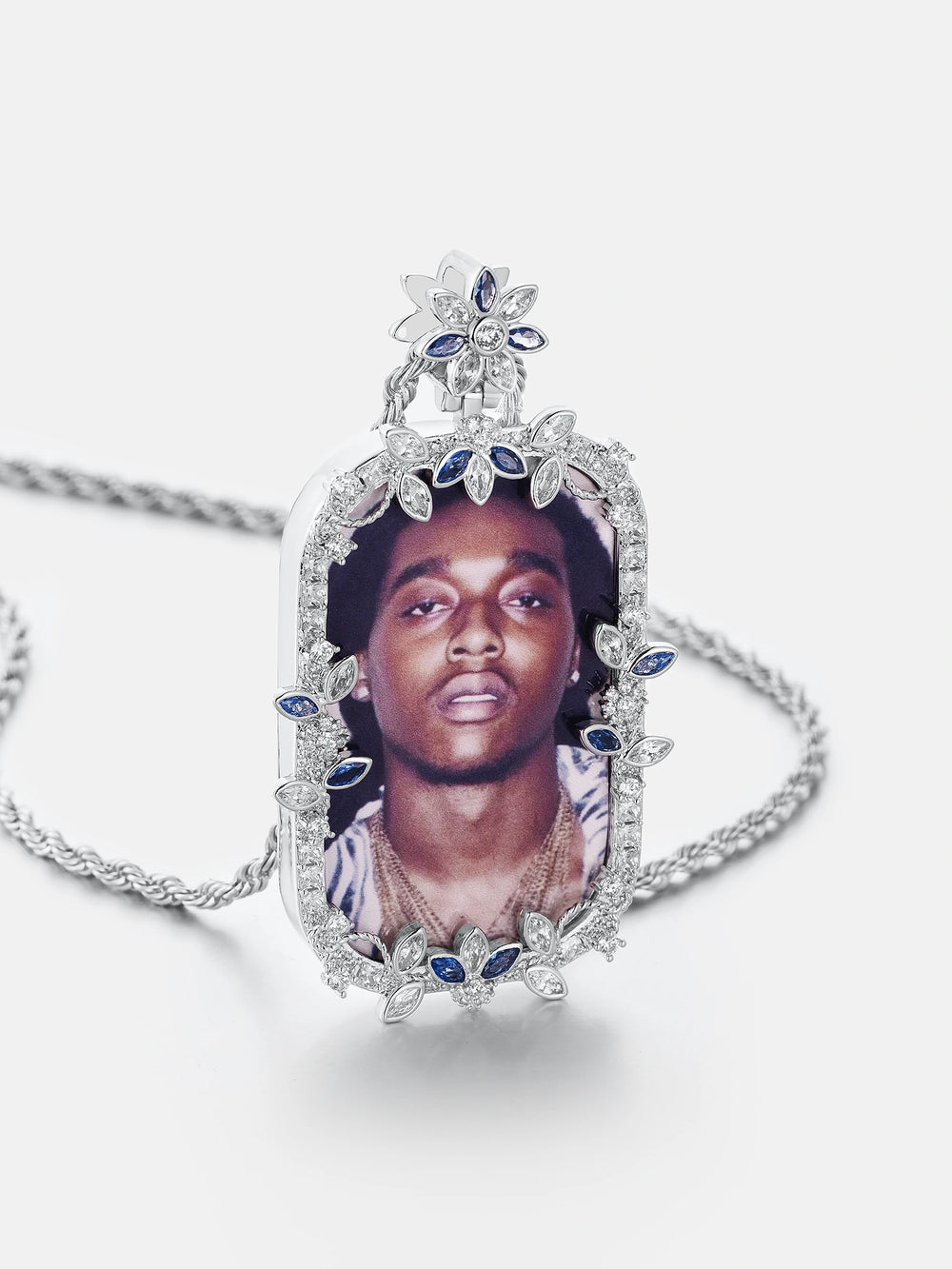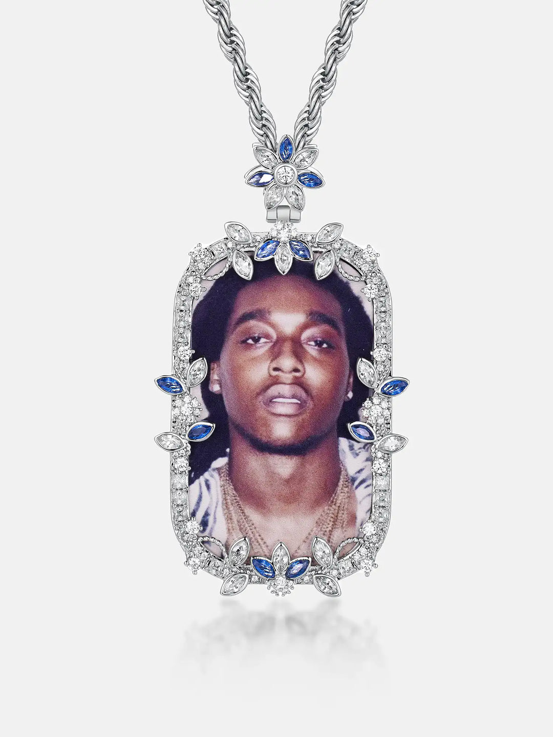 Moissanite Color Gem Flower Vine Photo Pendant 3.8CT