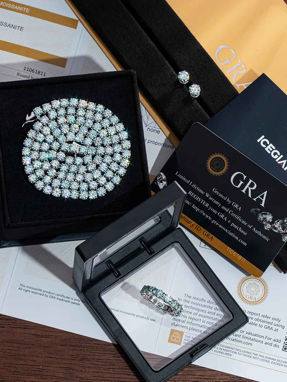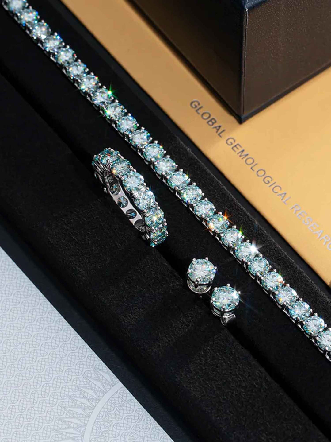 Rare Blue Moissanite Earrings & Ring & Chain Or Bracelet Set