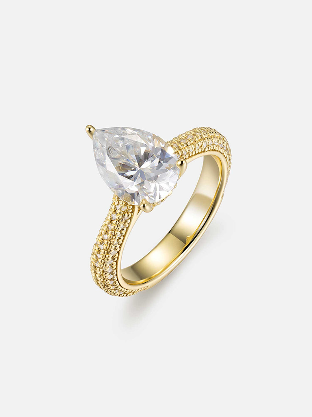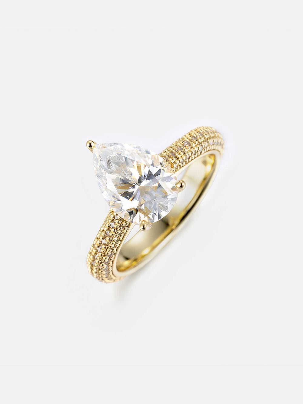 Pear Cut Halo Ring With Side Diamonds