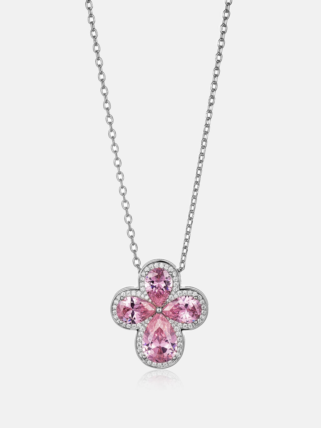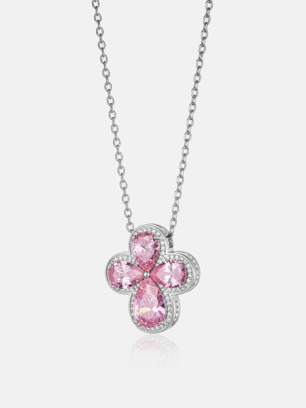Pink Gemstone Moissanite Four Leaf Clover Adjustable Necklace