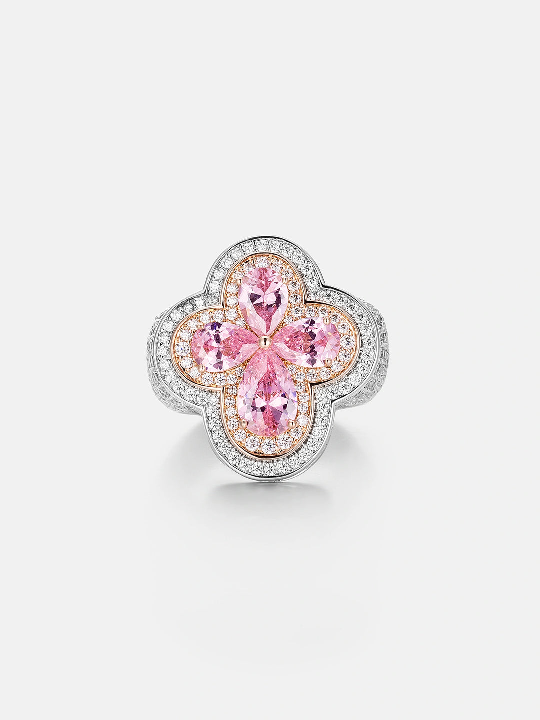 Pink Gemstone Moissanite Four Leaf Clover Ring