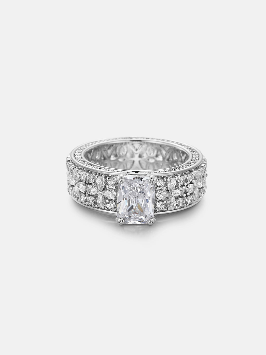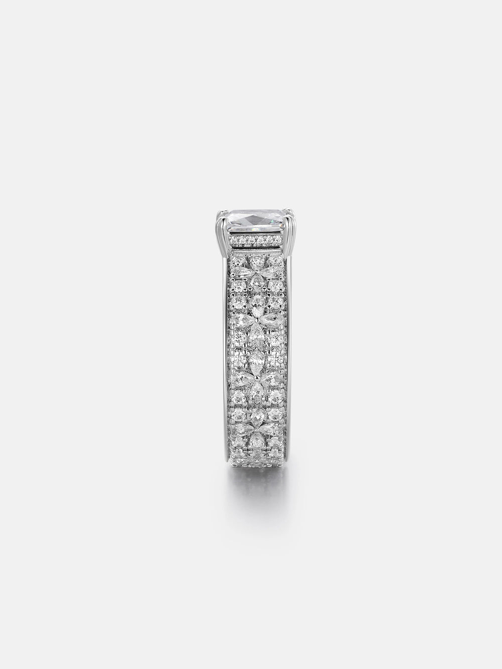 Radiant Solitaire Moissanite Triple Row Petal Eternity Ring