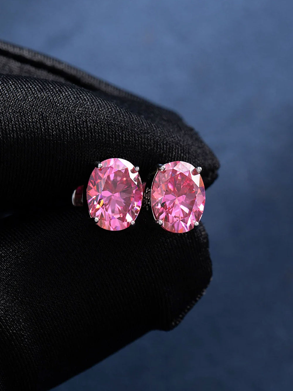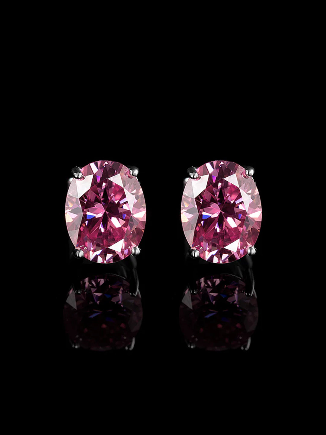 S925 Pink Moissanite Oval Cut Stud Earrings - 4 Carat Total