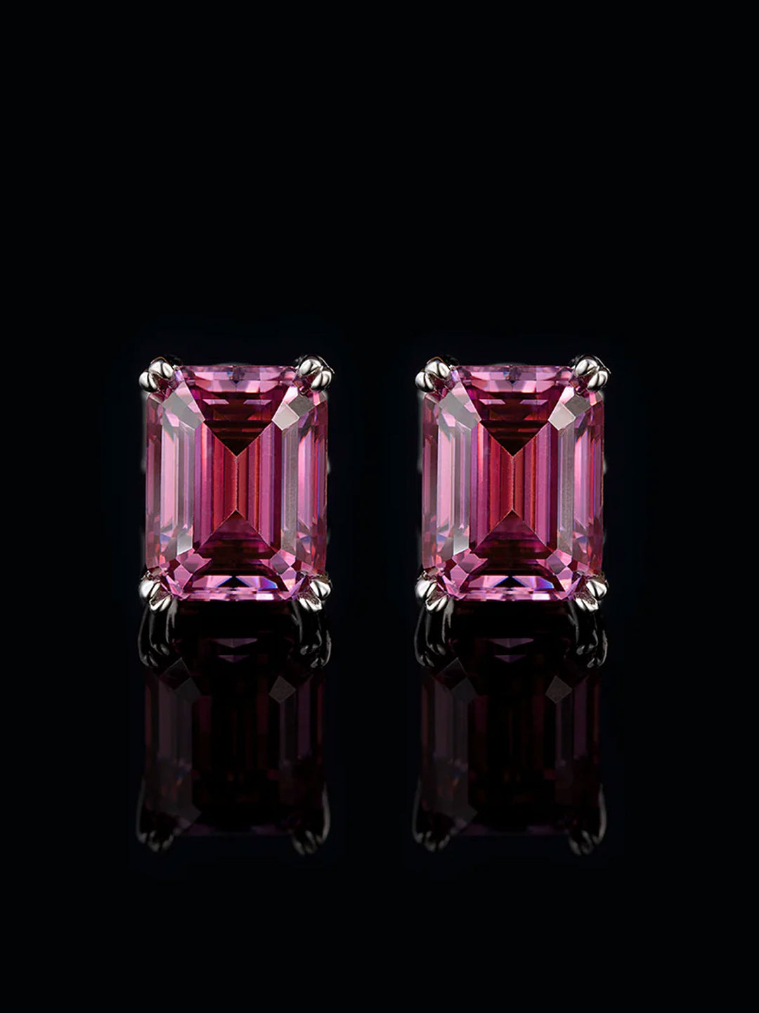 S925 Pink Moissanite Emerald Cut Stud Earrings-4.00 Carat Total