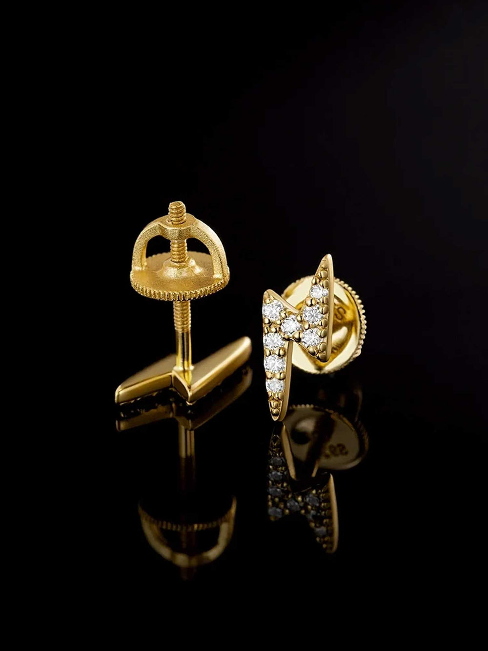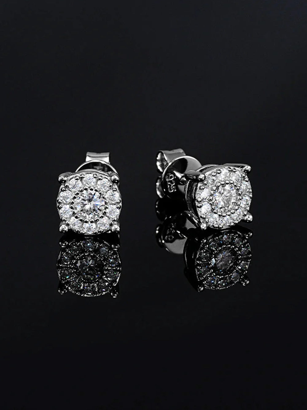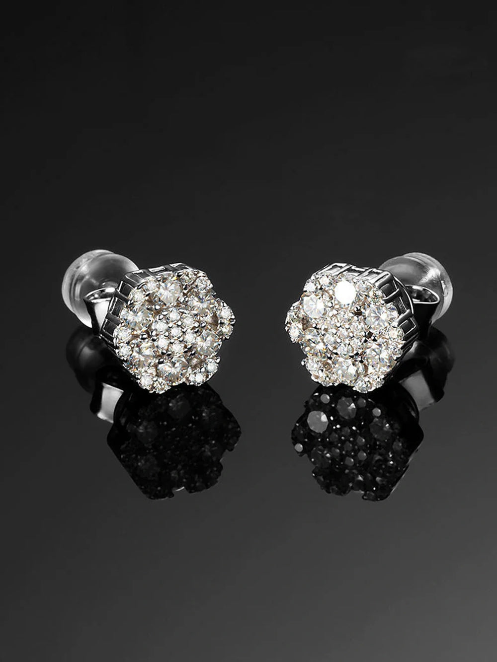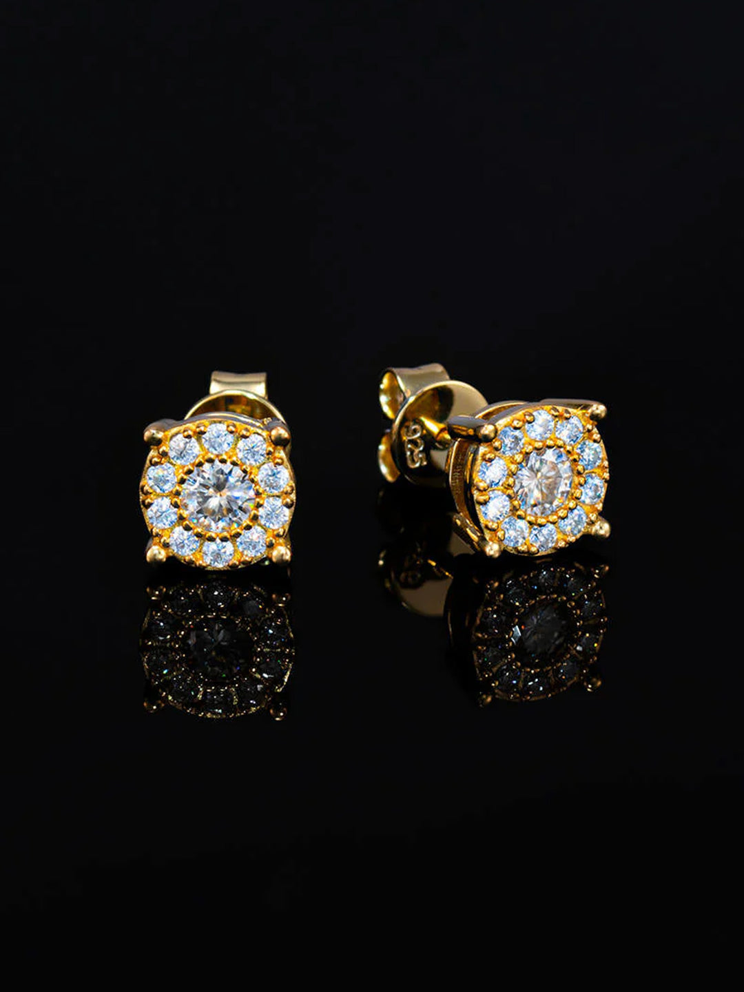 Solid Gold Moissanite Cluster Solitaire Earrings