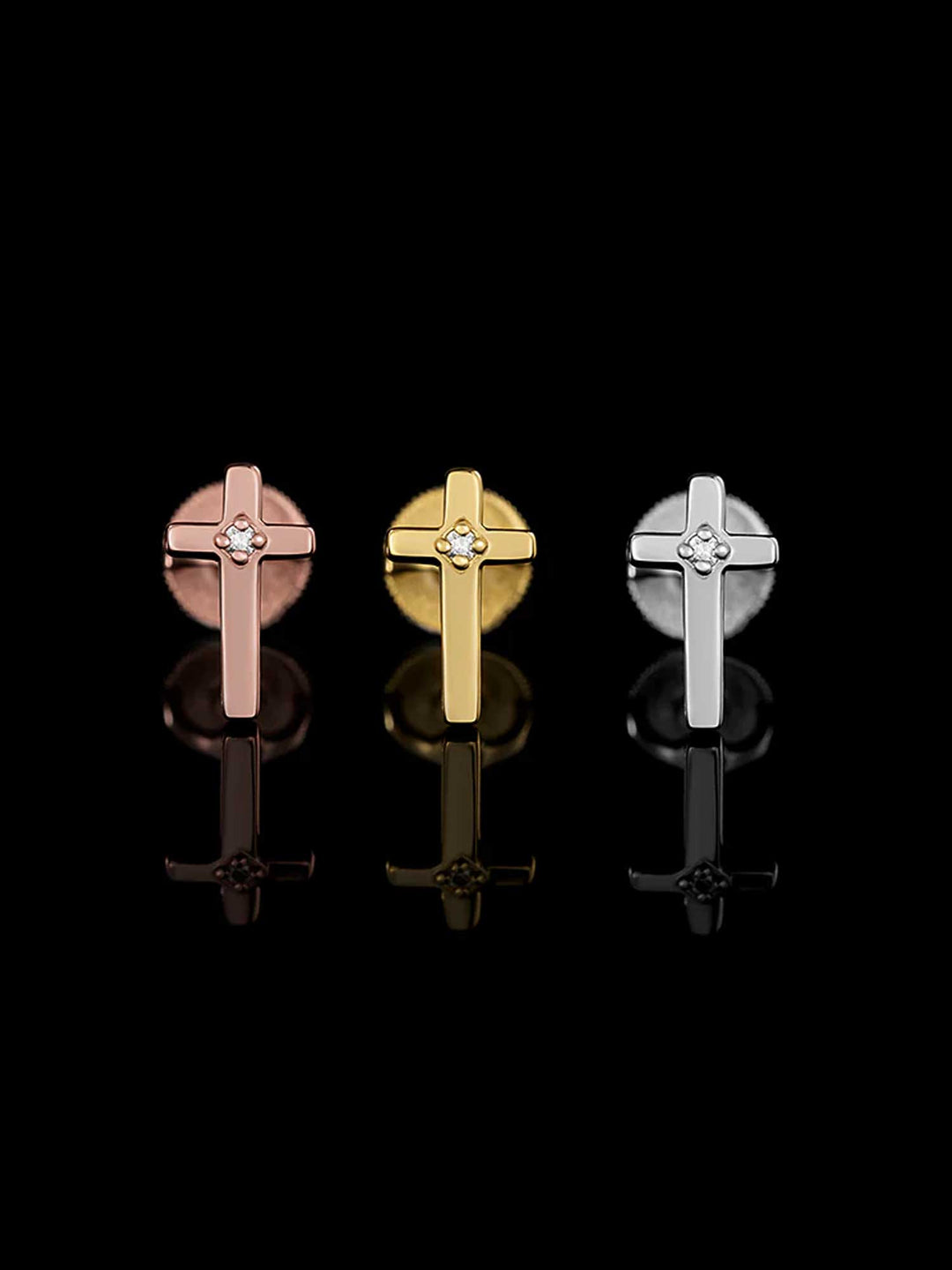Solid Gold Diamond Nail Cross Pendant - deposit