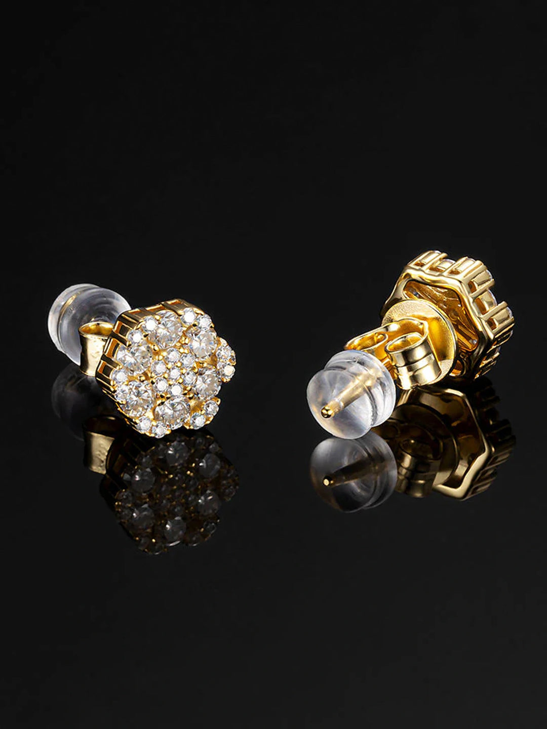 Solid Gold Moissanite Cluster Hexagon Earrings