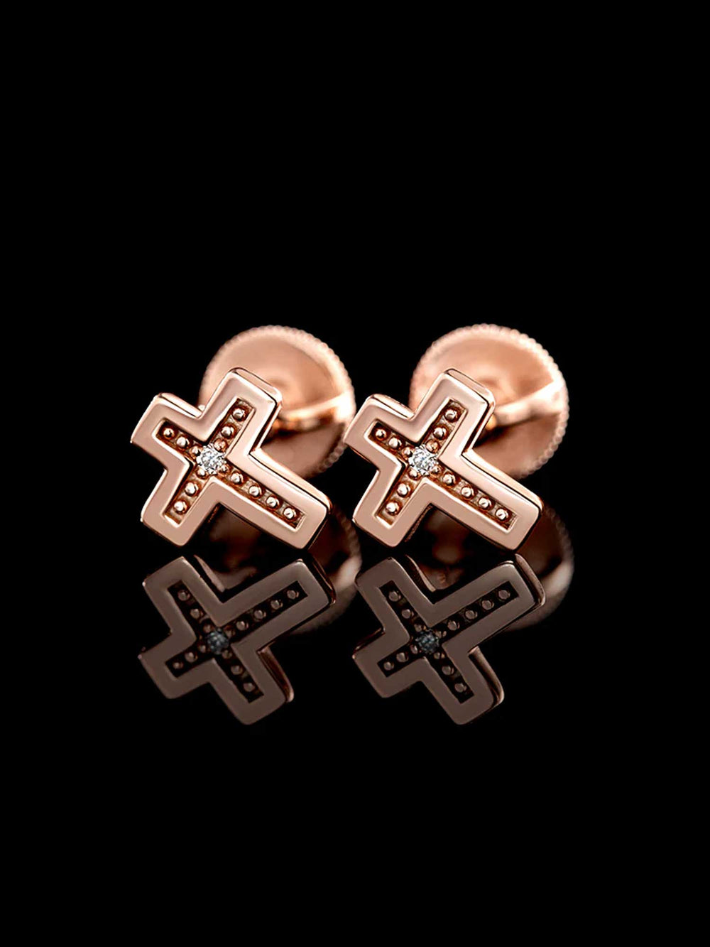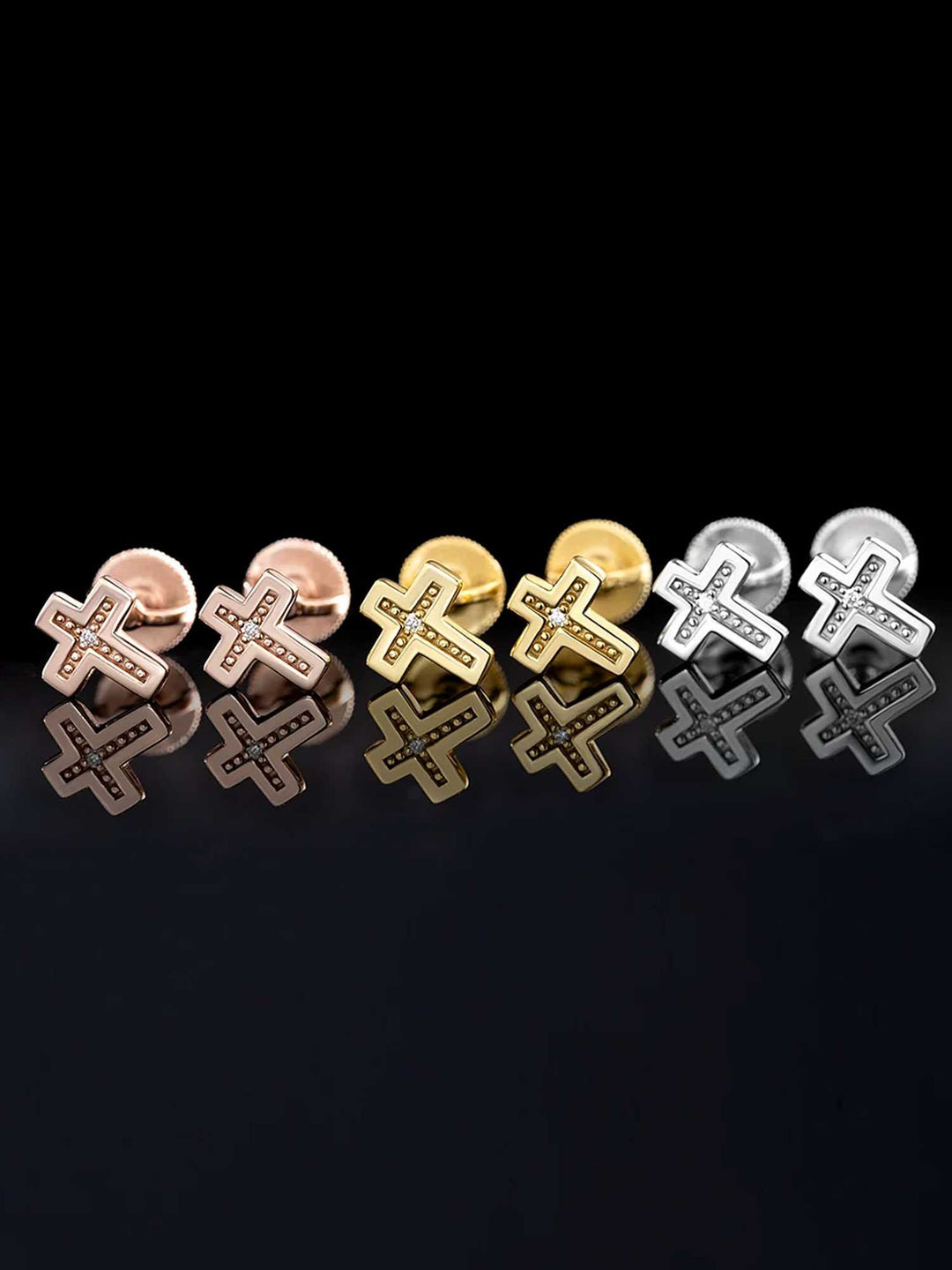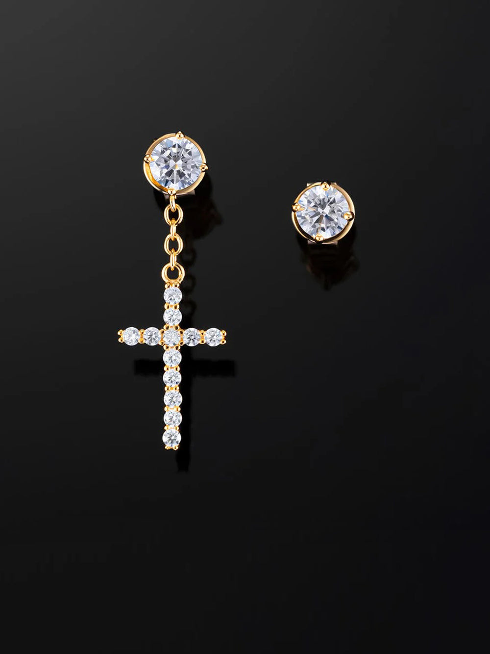 Solid Gold Stud Cross Dangle Moissanite Earrings