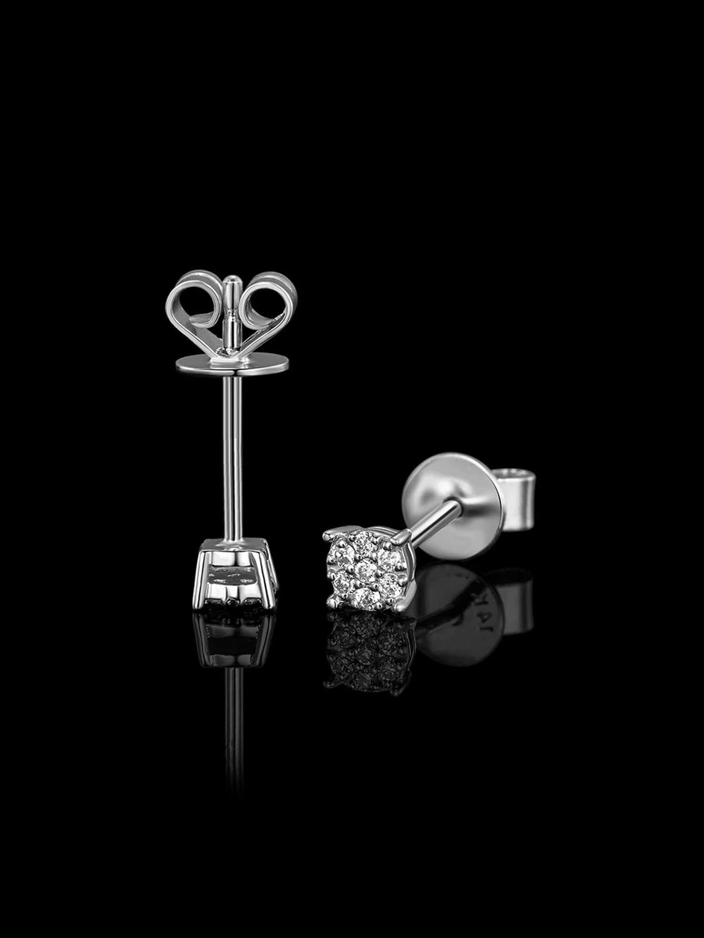 Solid Gold Real Diamond 3.2mm Cluster Hexagon Earrings