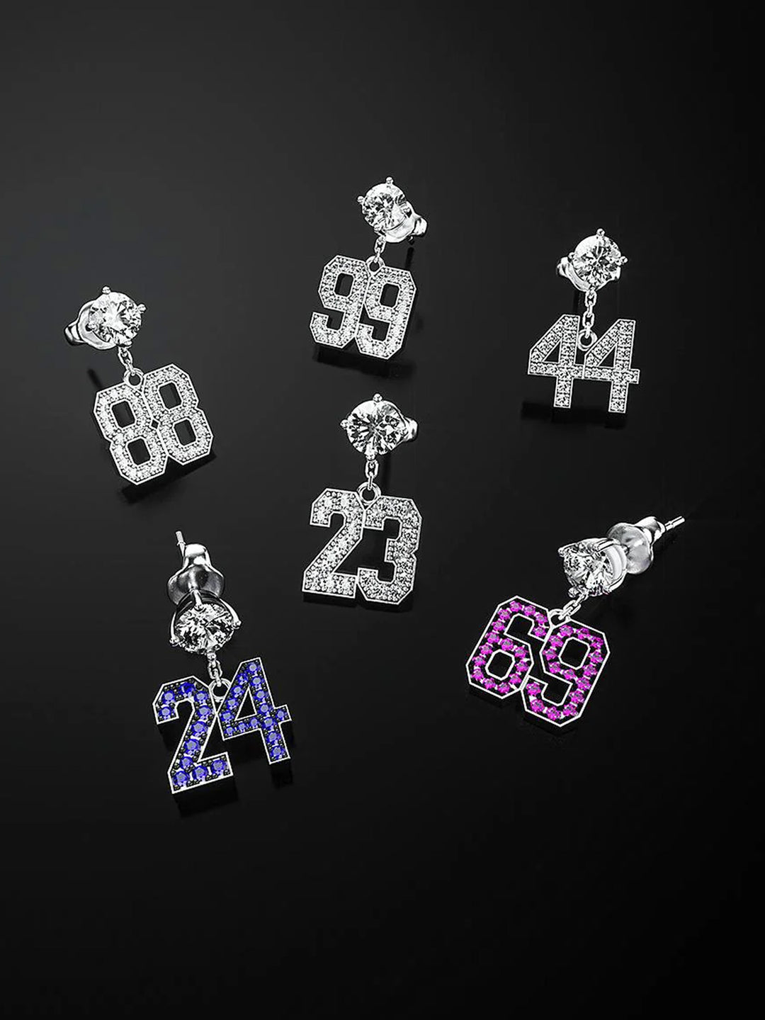 14K Solid Gold Diamond Number Stud Dangle Moissanite Earrings