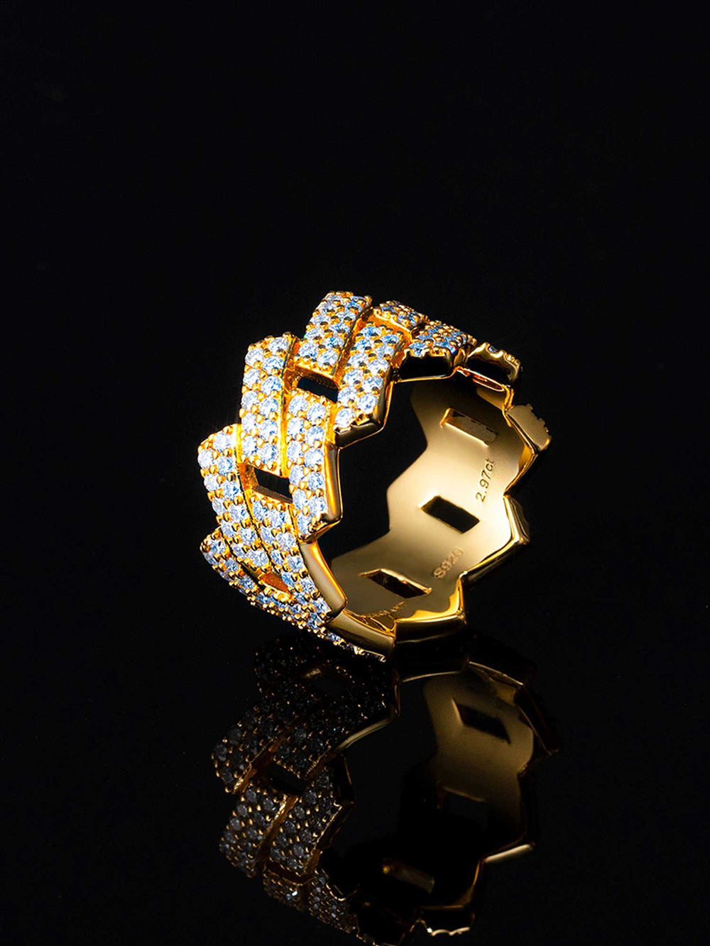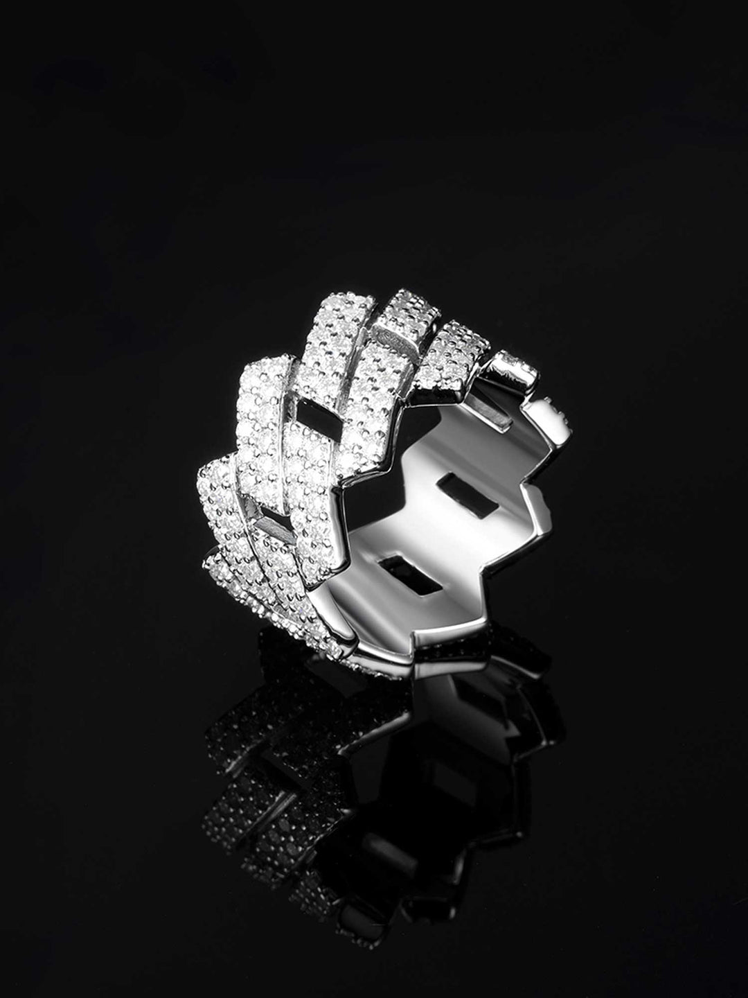 13mm 925 Sterling Silver Moissanite Prong Cuban Link Ring