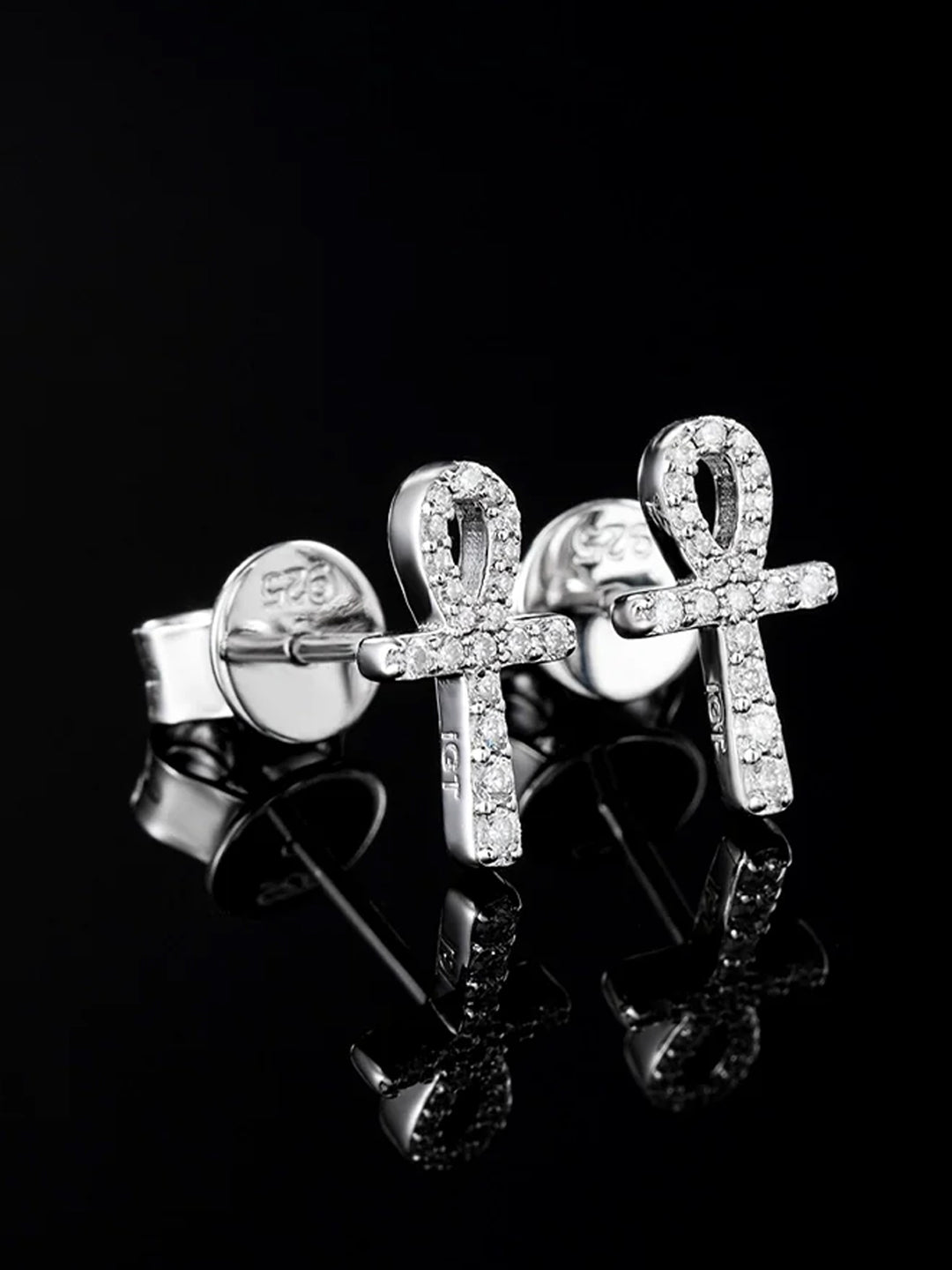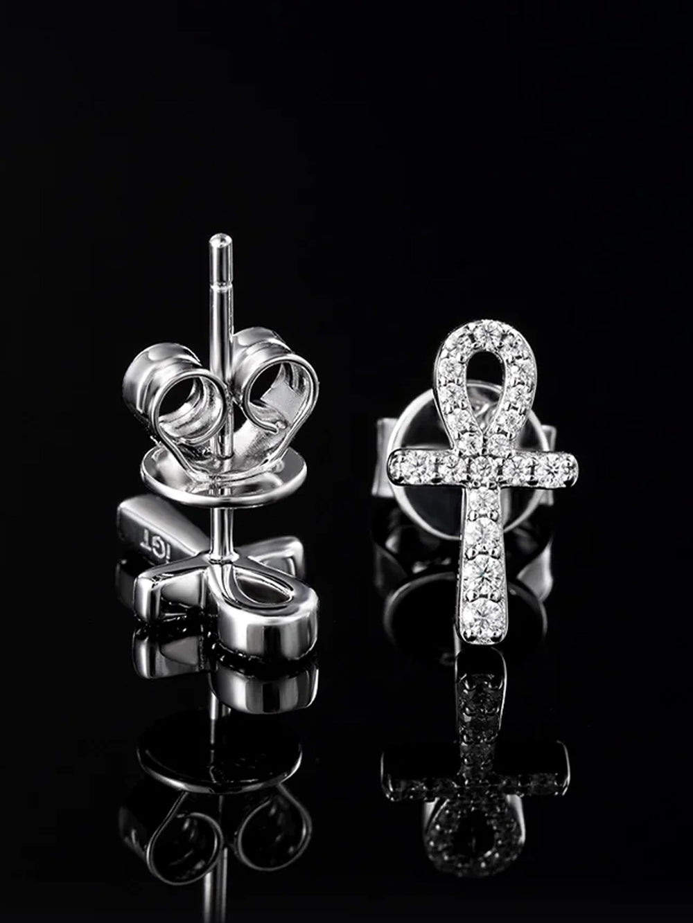 14K Solid Gold Micro Ankh Moissanite Stud Earring