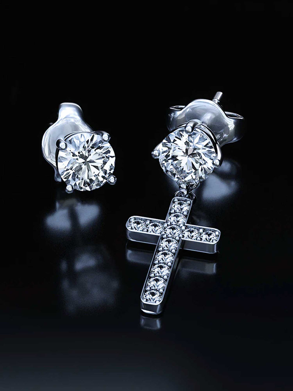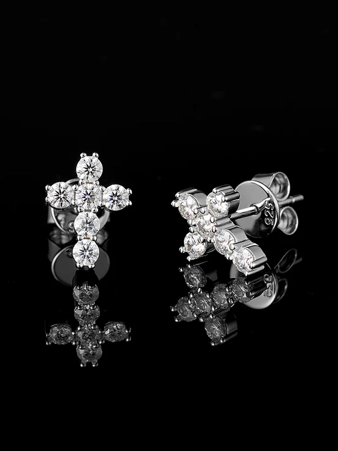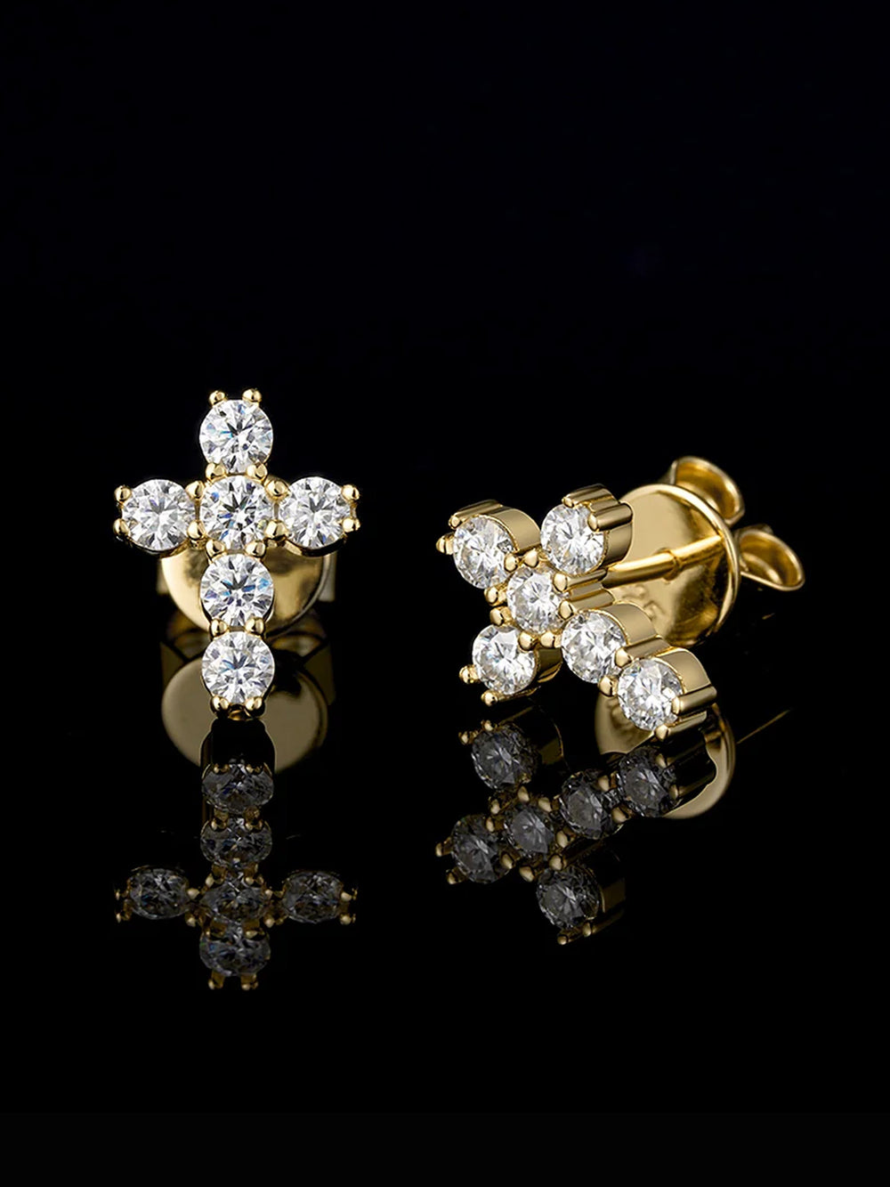 14K Solid Gold Round Cut Stud Cross Moissanite Earrings
