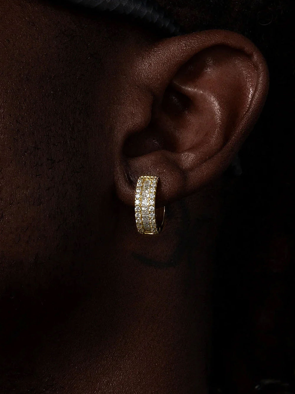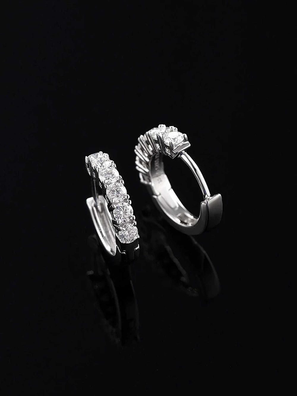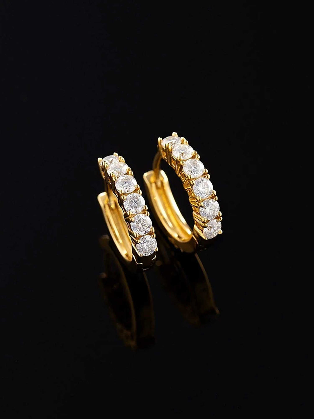 14K Solid Gold Moissanite Single Row Hoop Earrings