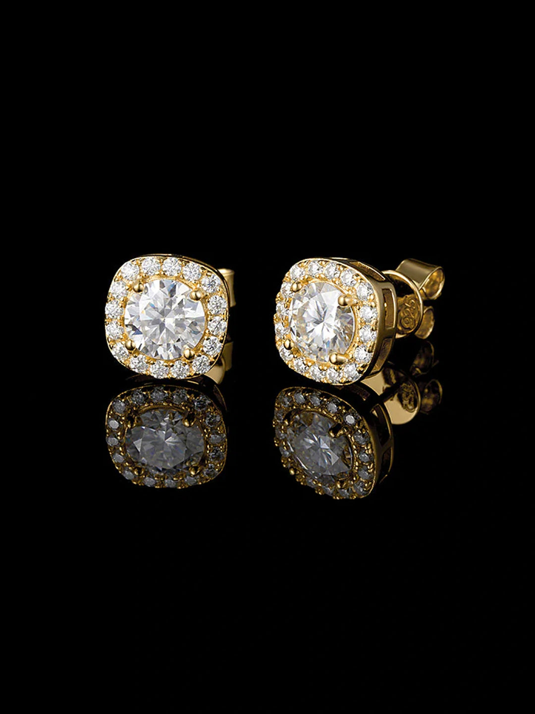 14K Solid Gold Halo Moissanite Stud Earrings-3CT Each