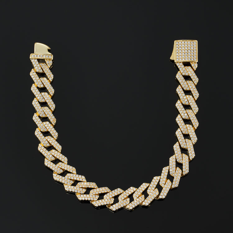 12mm Prong Cuban Link Bracelet in Yellow Gold