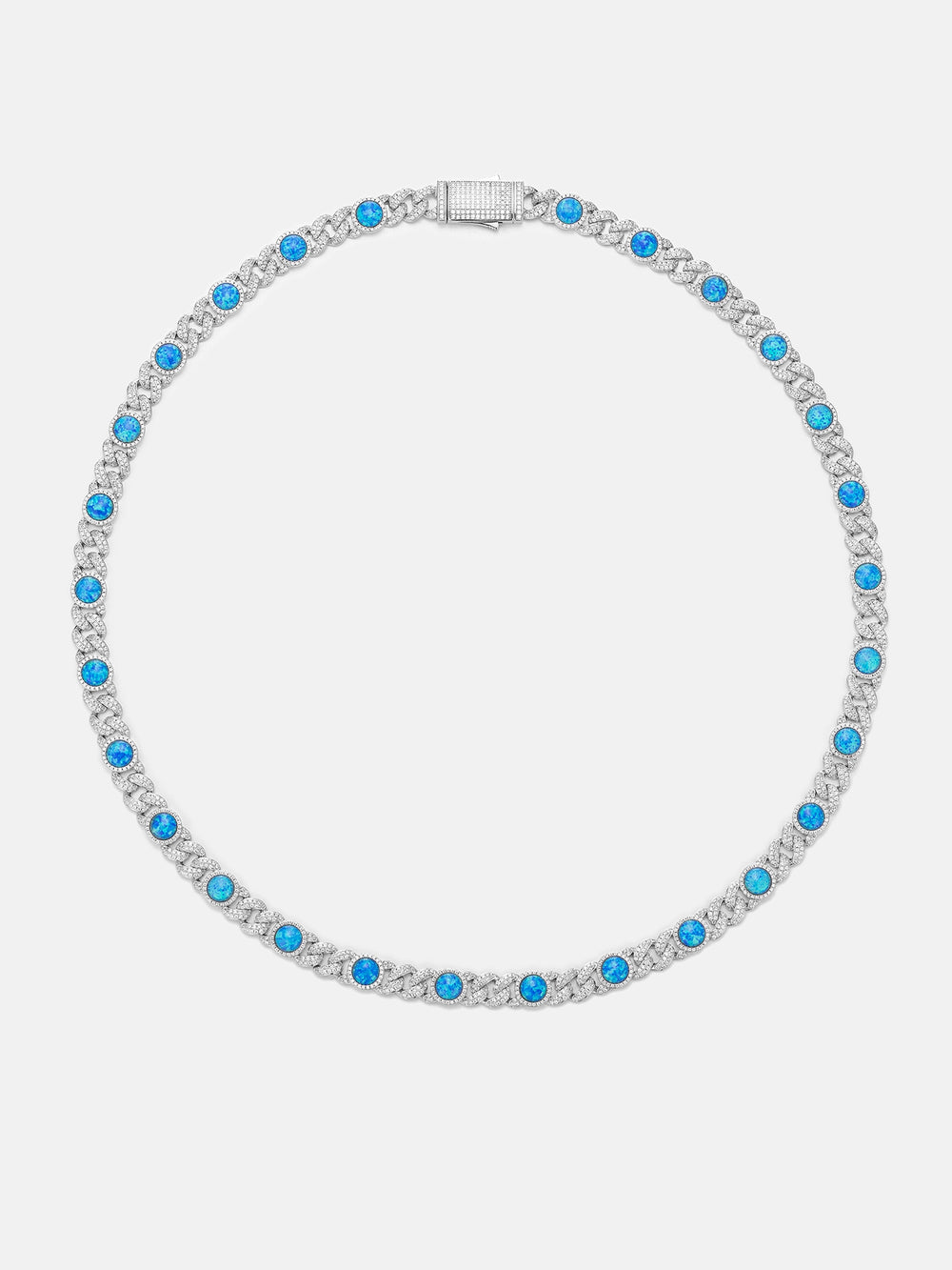 8mm Moissanite & Blue Opal Classic Cuban Chain