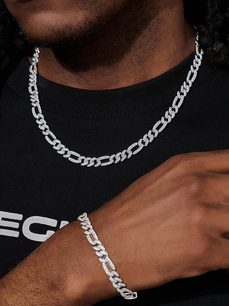 8MM S925 Moissanite Figaro Chain Or Bracelet