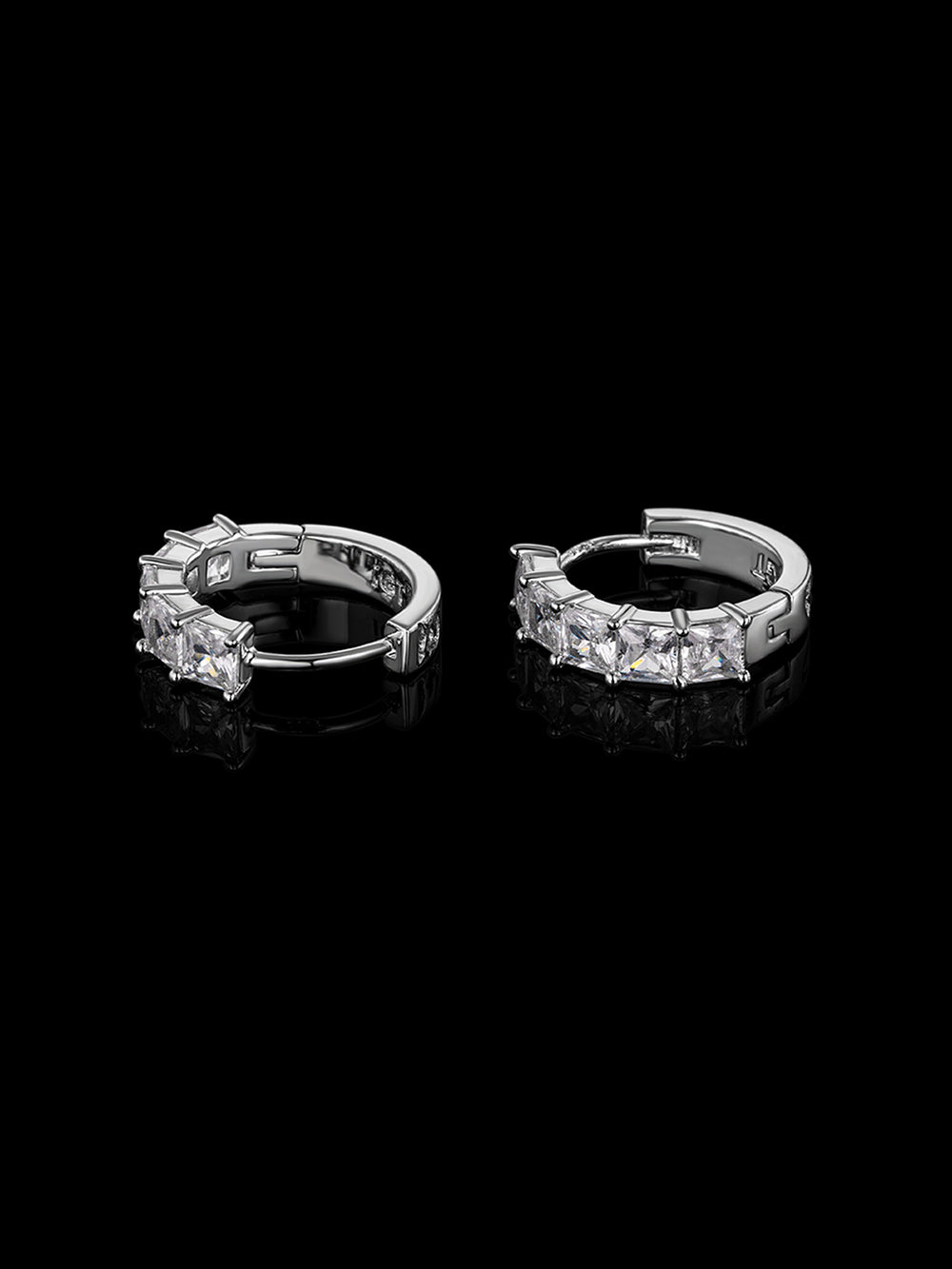 925 Sterling Silver Princess Cut Hoop Earrings