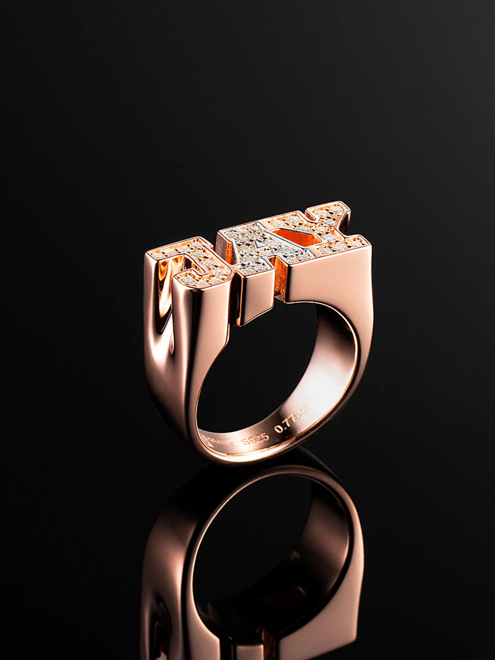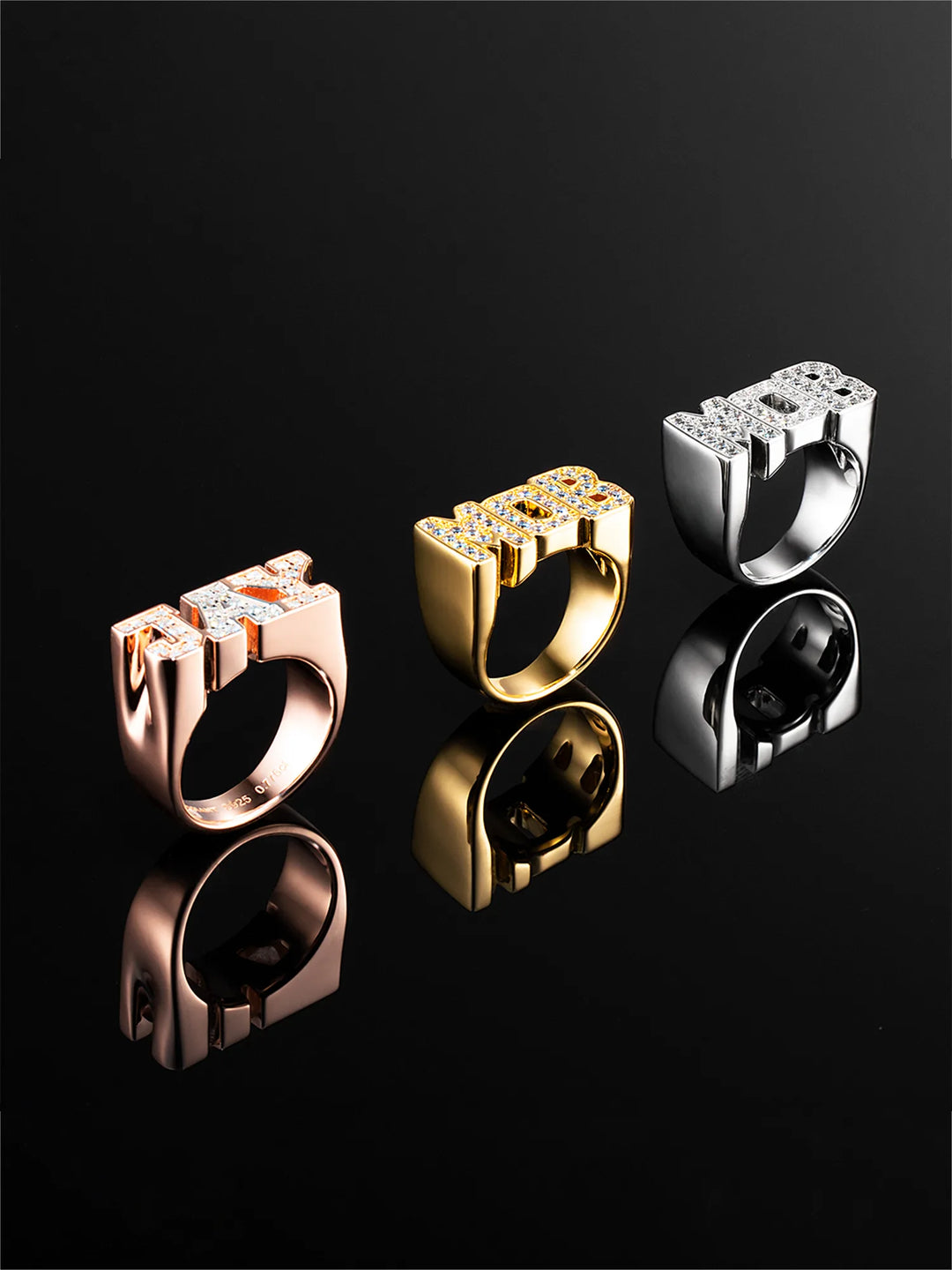 925 Sterling Silver Moissanite 3 Letters Ring