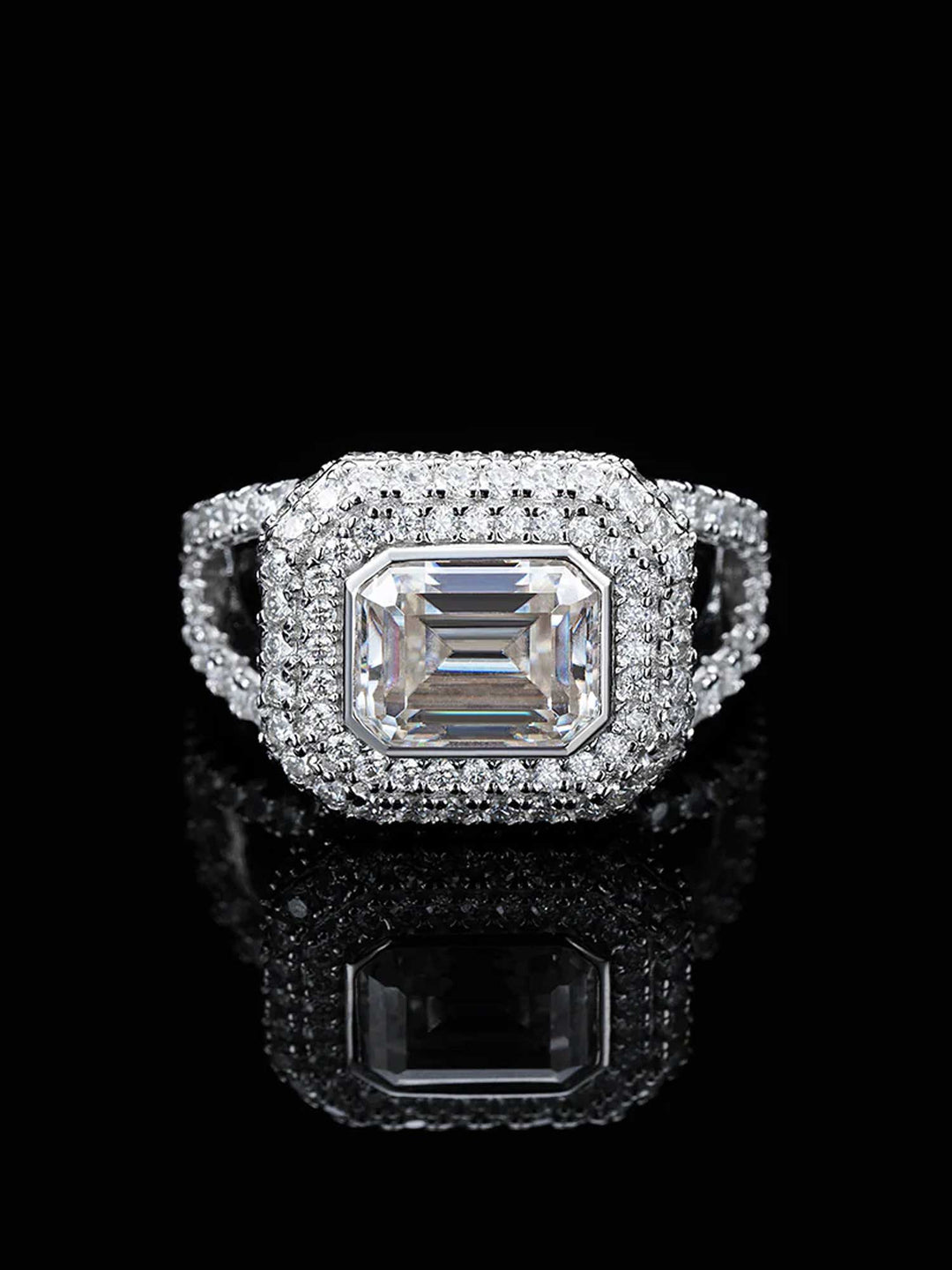 Baguette Moissanite Prong Cuban Ring