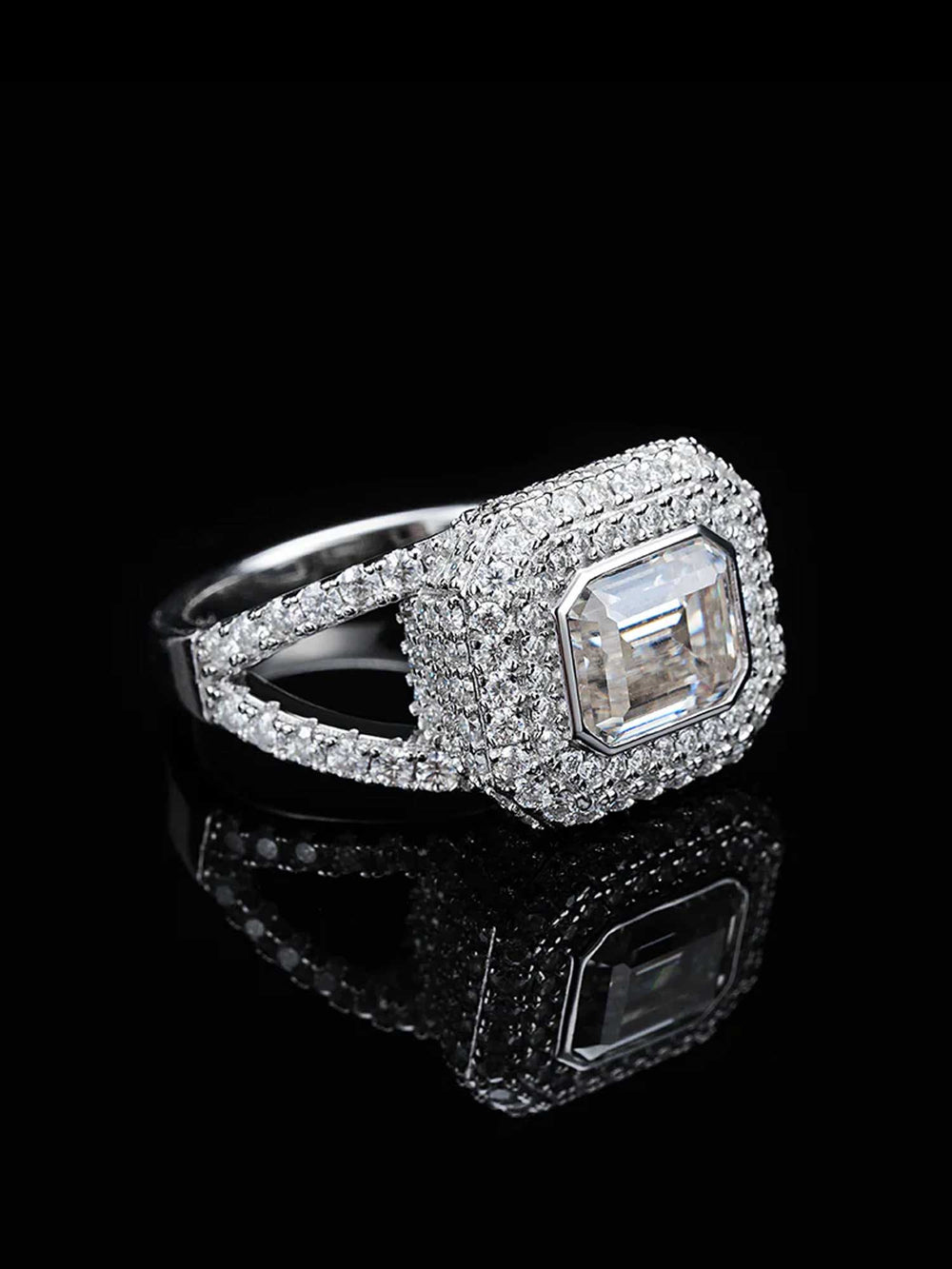 Baguette Clustered Round Cut Moissanite Ring