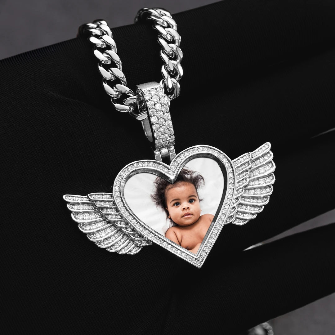 Angel Wings Heart Photo Pendant
