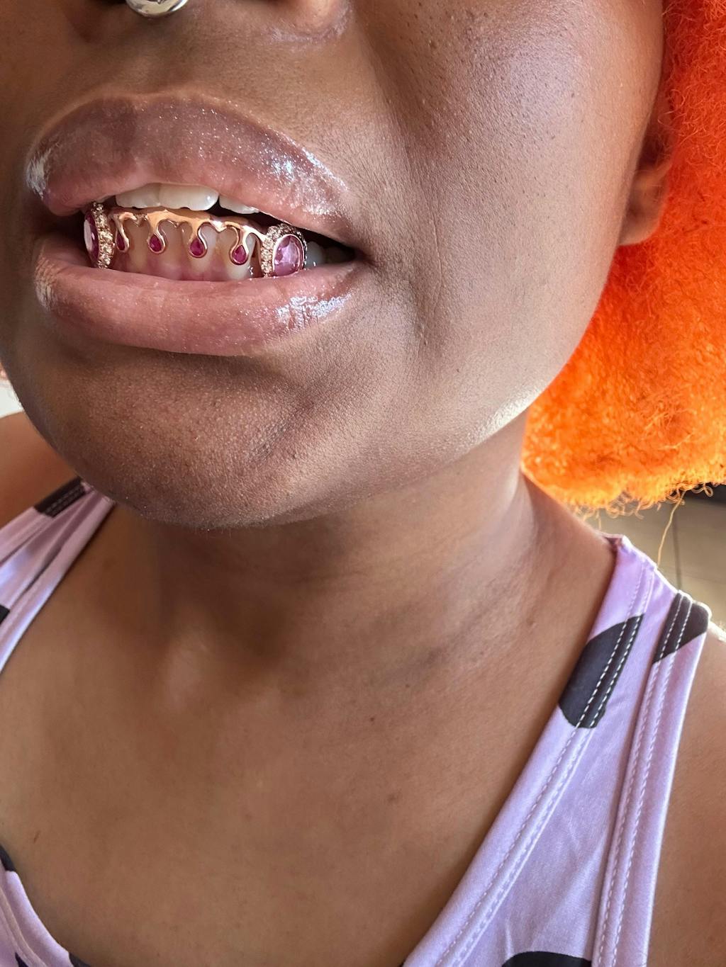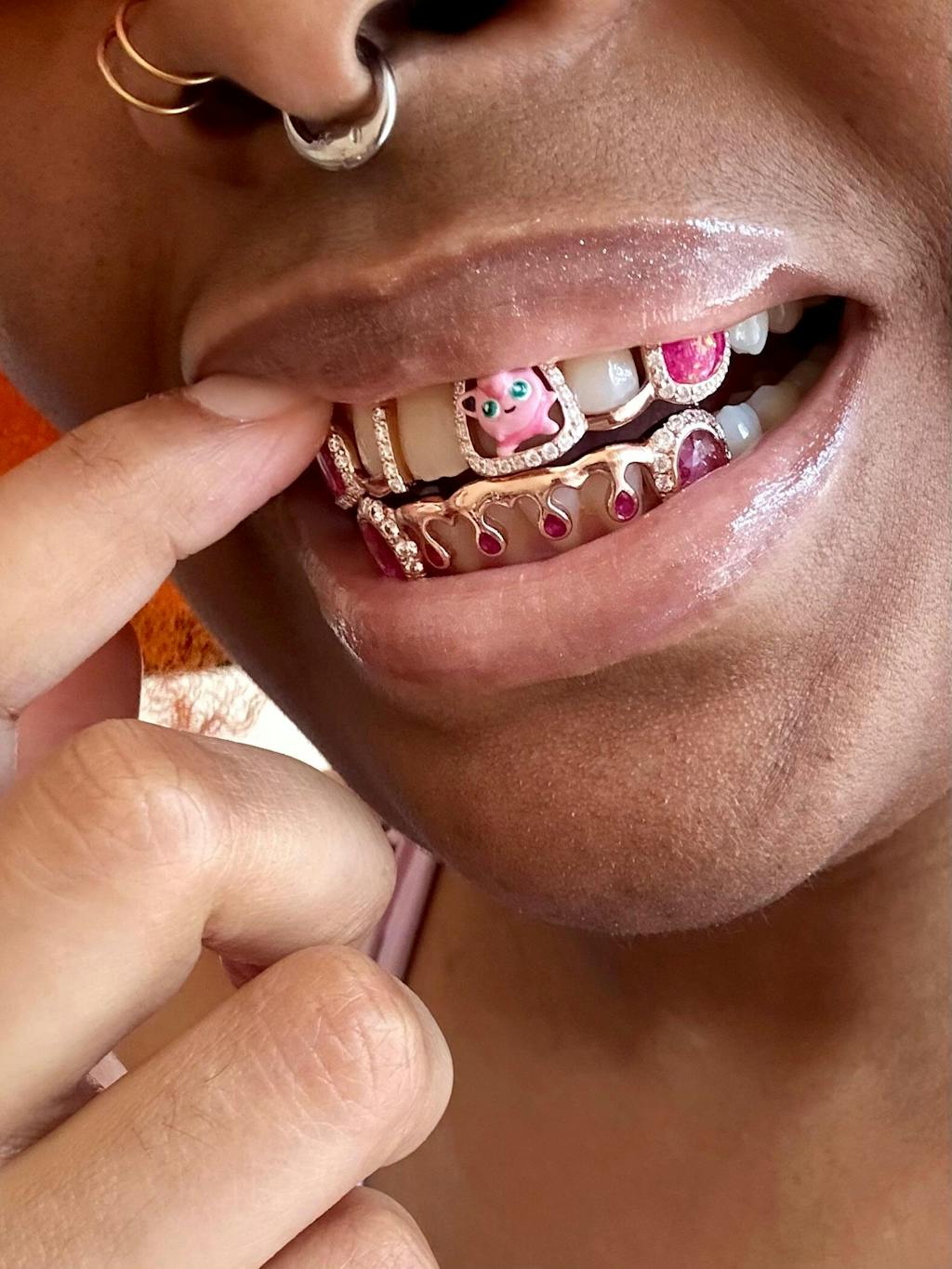 Channel your inner pop icon with the Jigglypuff Style Bar Grillz — a playful twist on luxury rose gold grillz. Crafted with bold gems and a whimsical design, these rose gold grillz bring charm and confidence to every smile. Perfect for the urban dreamer who turns everyday moments into style statements.