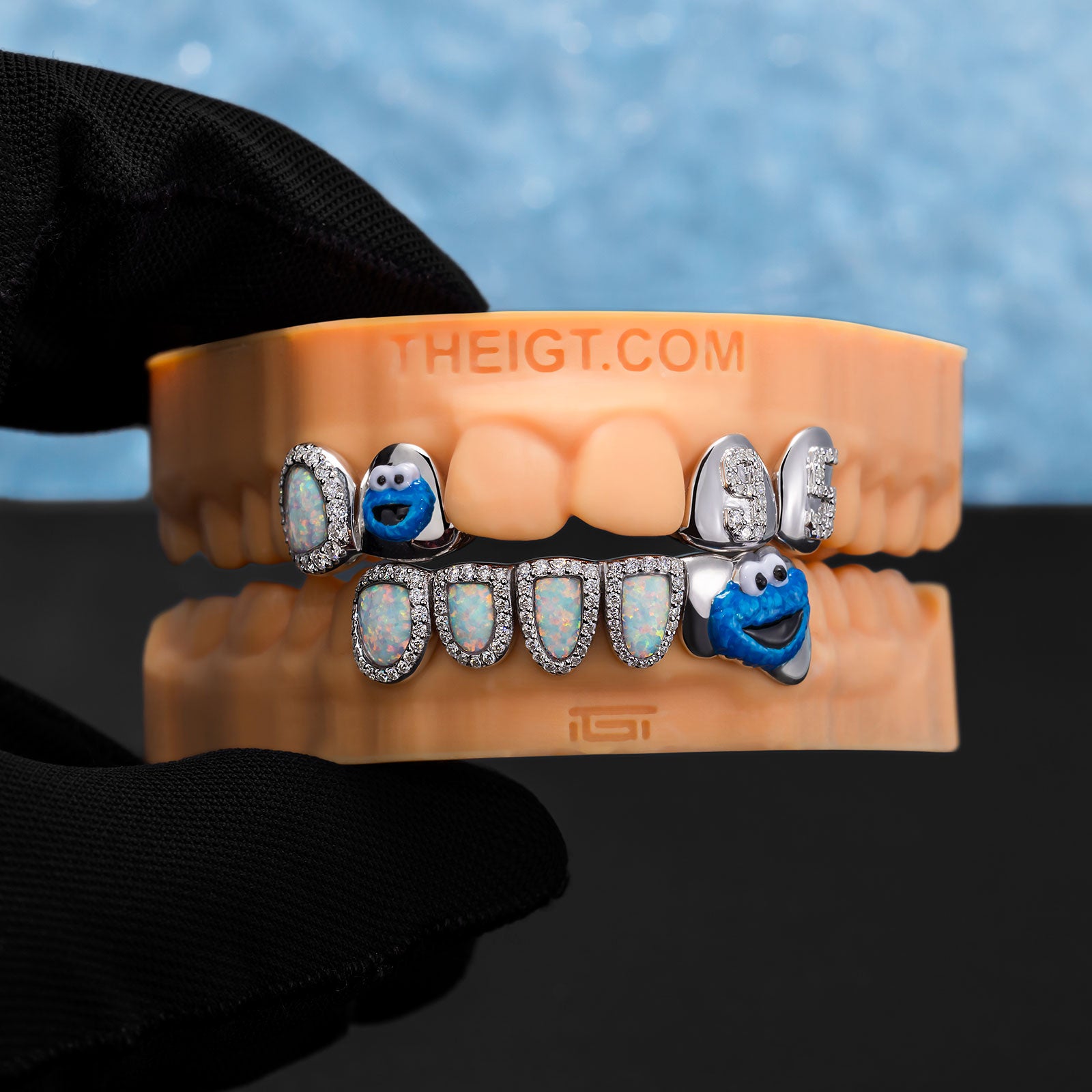 Cookies & Opal Diamond Grillz combine stunning Australian opal with vibrant enamel craftsmanship to create a truly unique and captivating design. This blend brings playful energy and artistic detail to your style, making it impossible to go unnoticed.