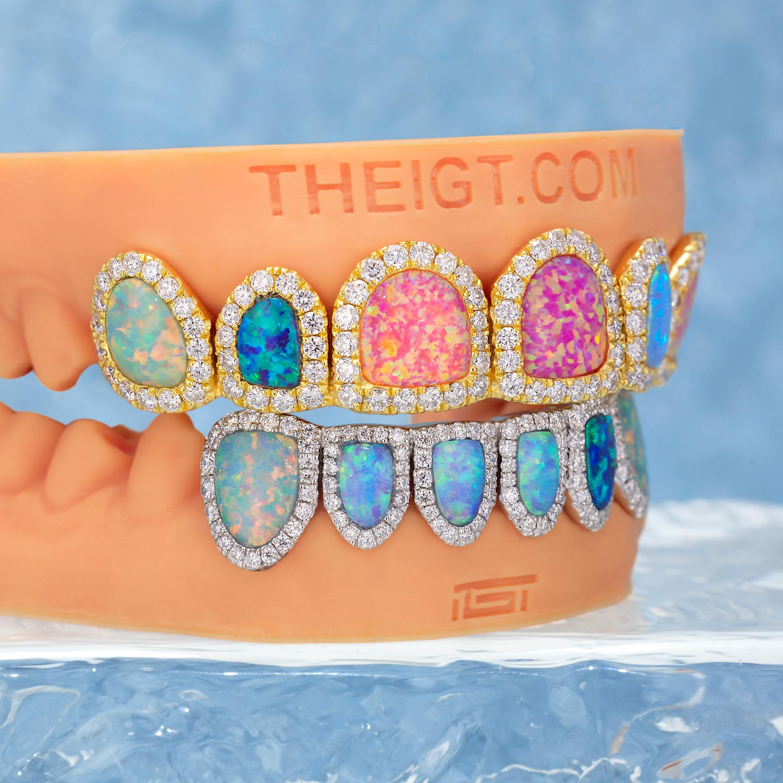 Elevate your style and make a statement with our PAVE SETTING MULTI-COLORED OPAL DIAMOND GRILLZ. Made by skilled craftsmen with over 20 years of experience, each grill is handcrafted with precision and care to provide a flawless fit and sparkling shine. The moissanite and opal add unique touches of glamour and personality, while our custom options allow you to create your perfect grillz.