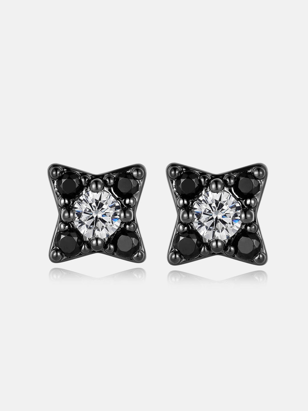 Black Gold Moissanite Four Pointed Star Stud Earrings