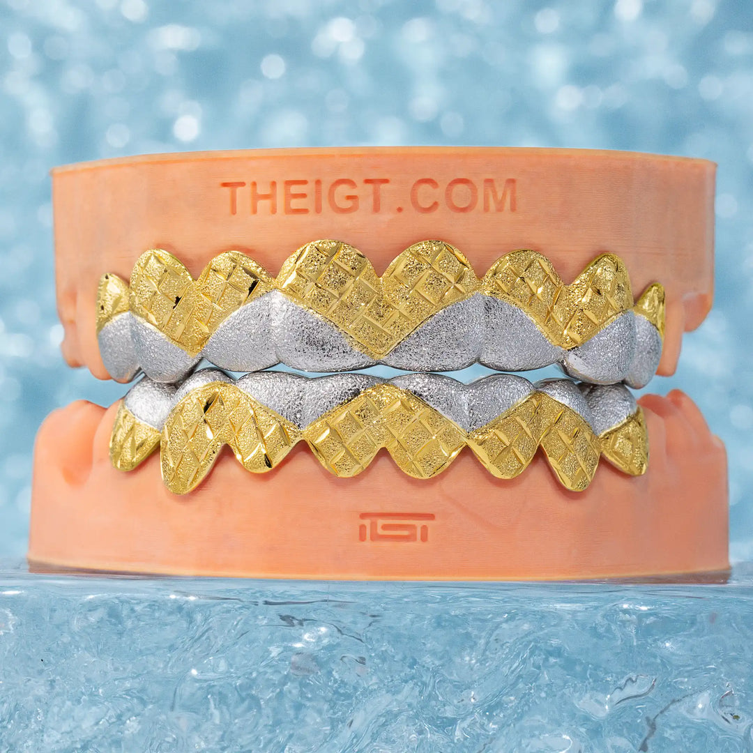 Two Tone Diamond Cut With Diamond Dust Wave Grillz