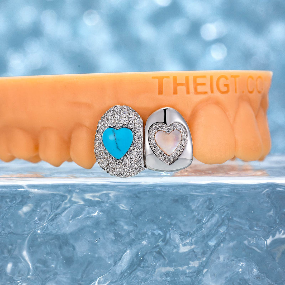Turquoise & Pink Shell On Cap Grillz
