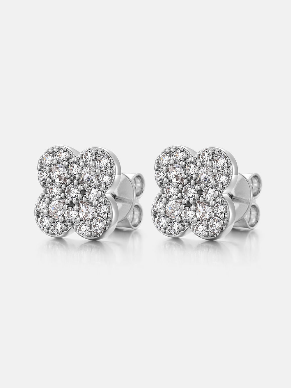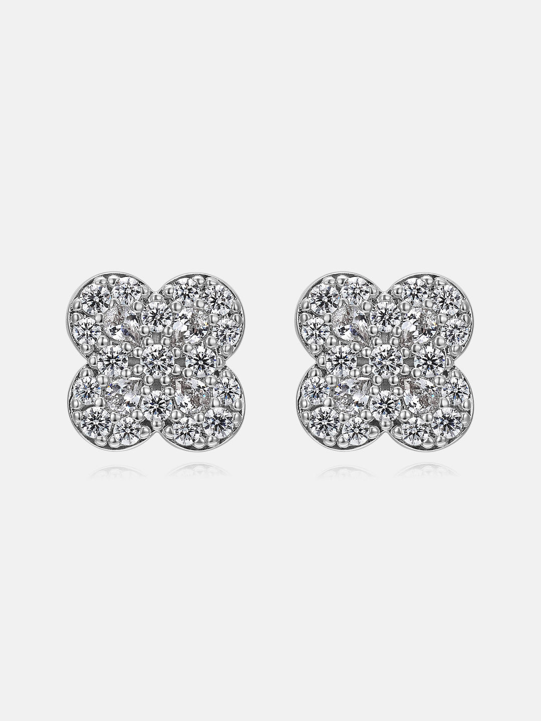 Double Row Four Leaf Clover Moissanite Hoop Earrings