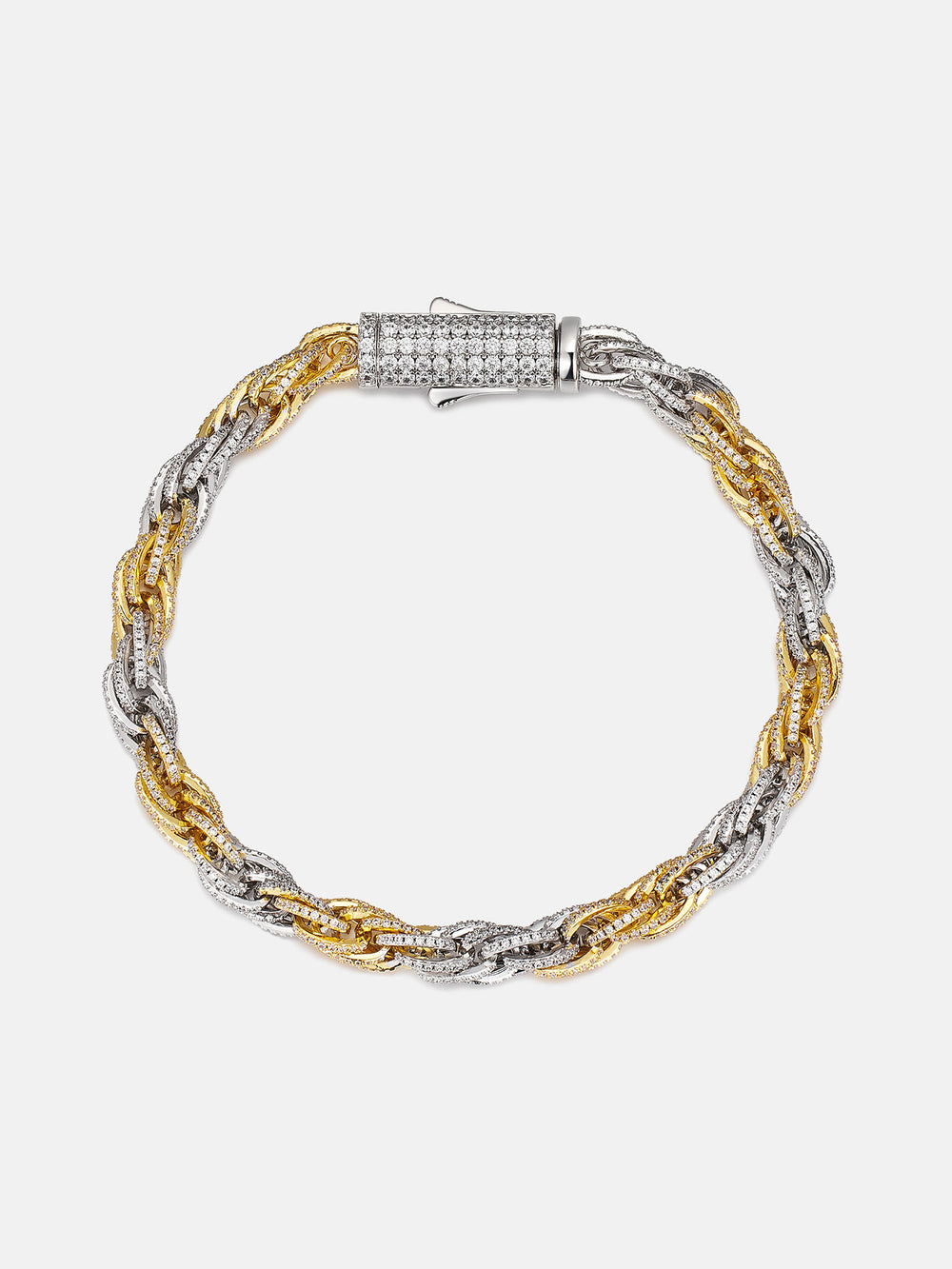 S925 Moissanite Two Tone 5mm Rope Chain Or Bracelet