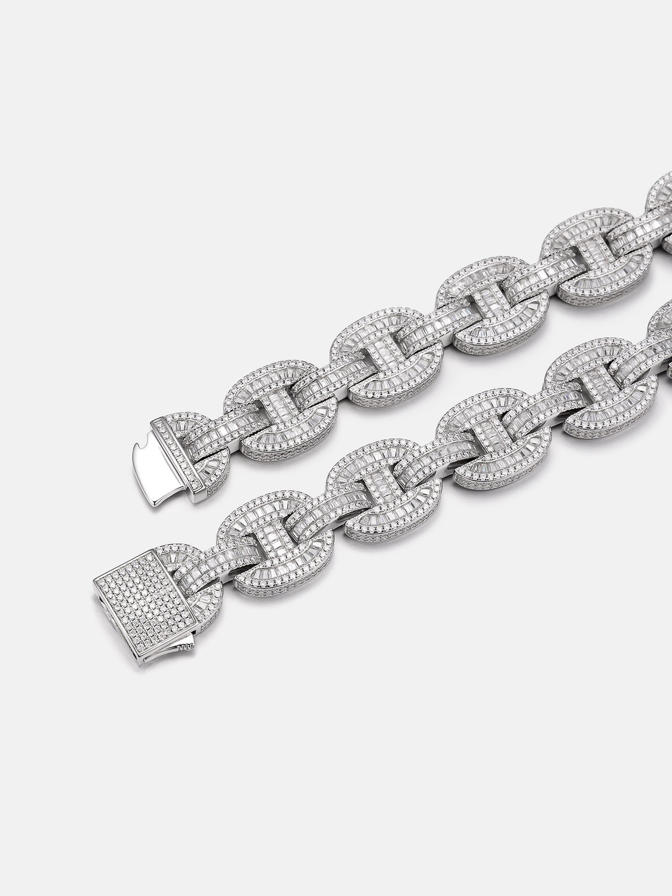 This latest Mariner Link Chain is the most expensive and luxurious chain we have released. A perfect combination of Round cut and Baguette-cut and even the side is pavé. The king of ICEGIANT chains.