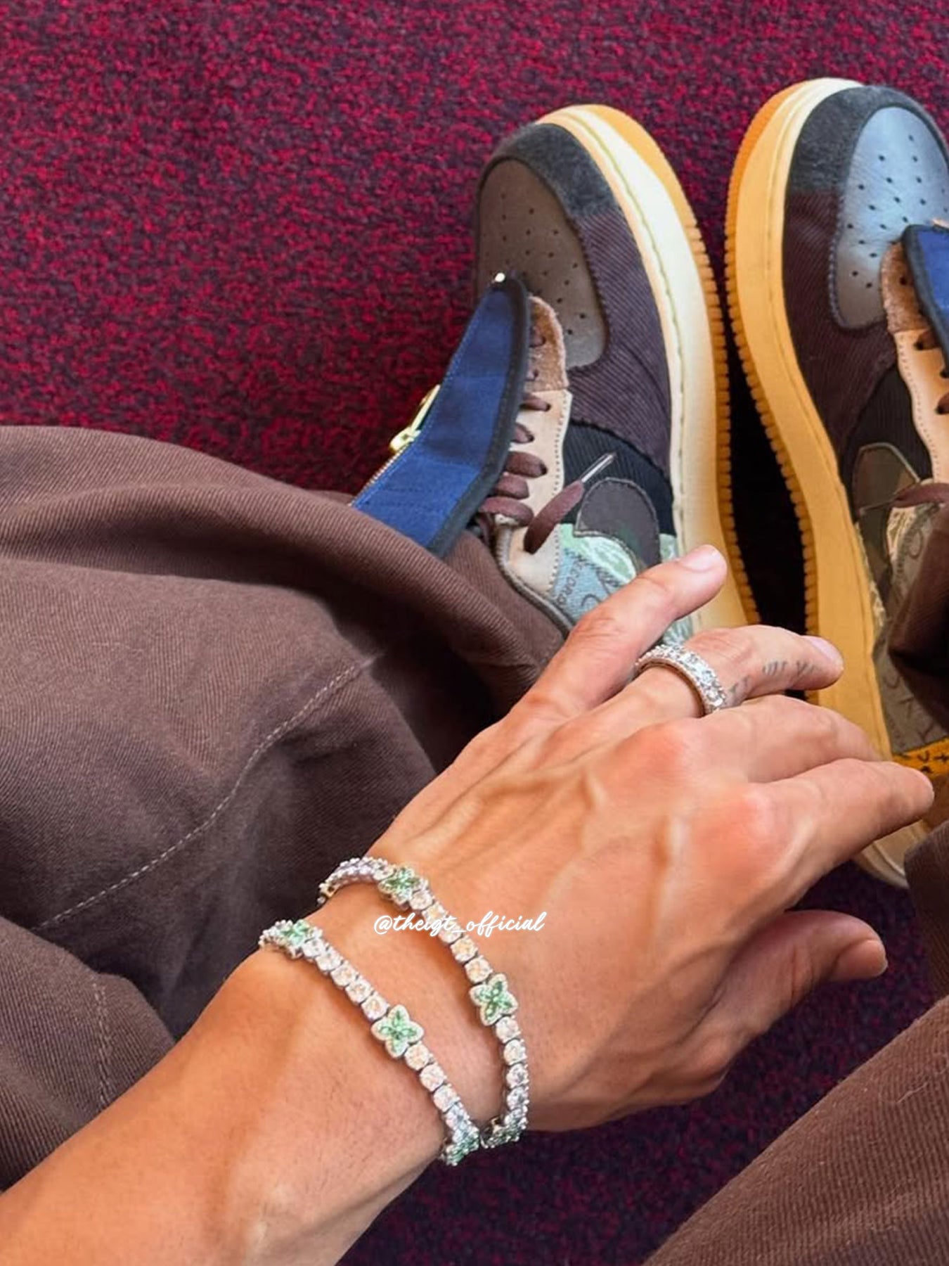 White Moissanite Green Marquise Gem Clover Tennis Bracelet