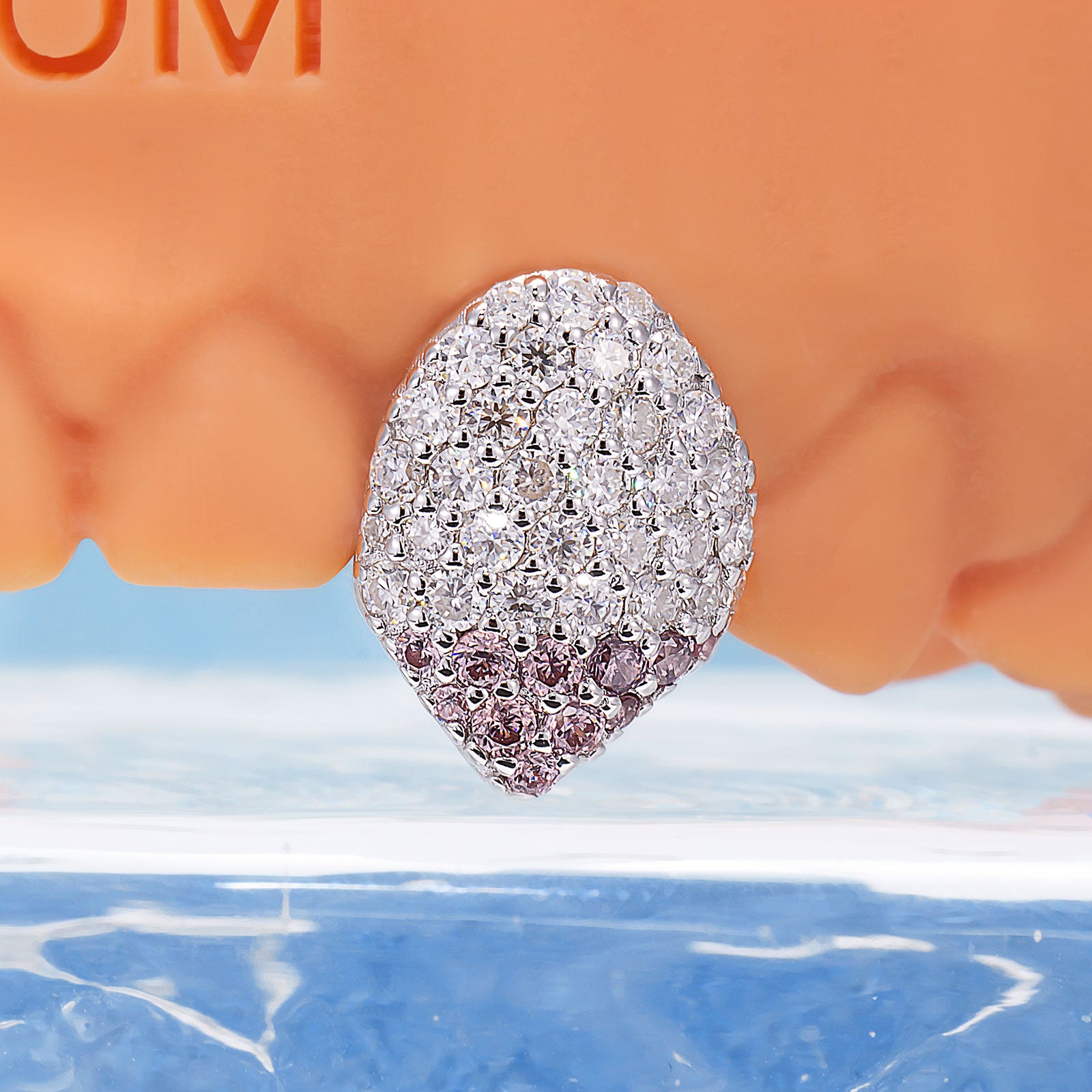 Go wild with the Pink Tip Fang Grillz, featuring a high-polish silver base iced out in white diamonds with a savage pink diamond-dusted tip. Whether you're letting out a scream at the front row of a concert, shutting down the house party, or gifting some elite custom ice to your best friend, these fangs deliver that authentic hip-hop drip. Secure this bespoke street-luxe look and keep your shine on a whole different level.