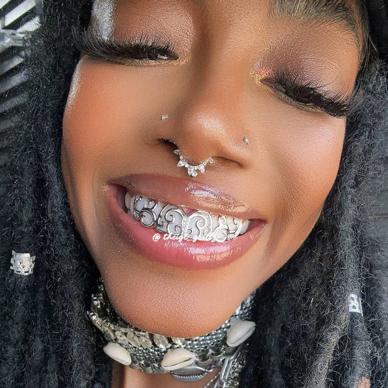 Custom Gap Bar & Colored Opal W Smile Face Grillz