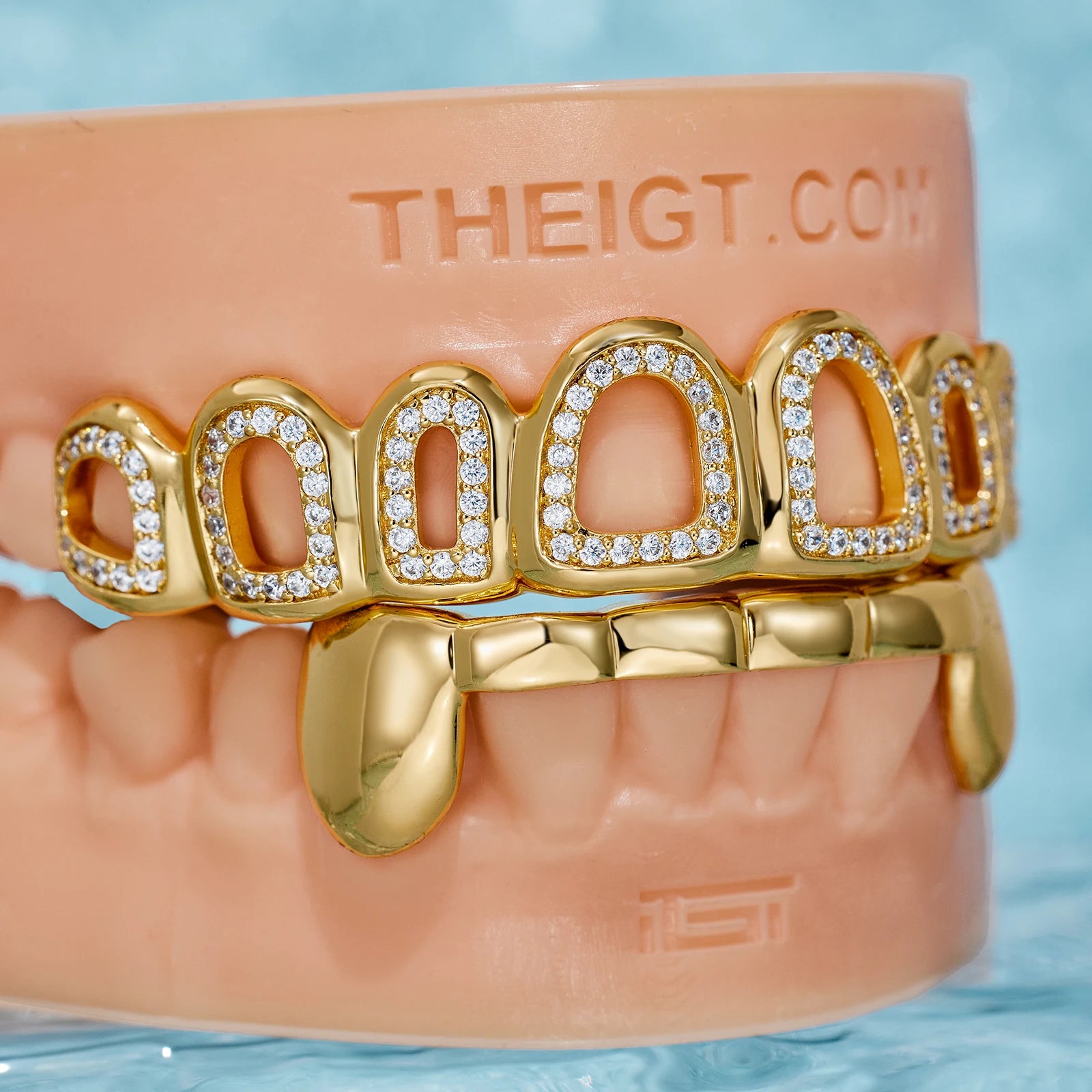 Experience the ultimate in street-style luxury with these custom iced-out open-face grillz. Perfect for making a statement, these grillz are crafted with superior quality and stunning detail, adding a fashionable flair to any look. Flaunt your style with the perfect finishing touch.