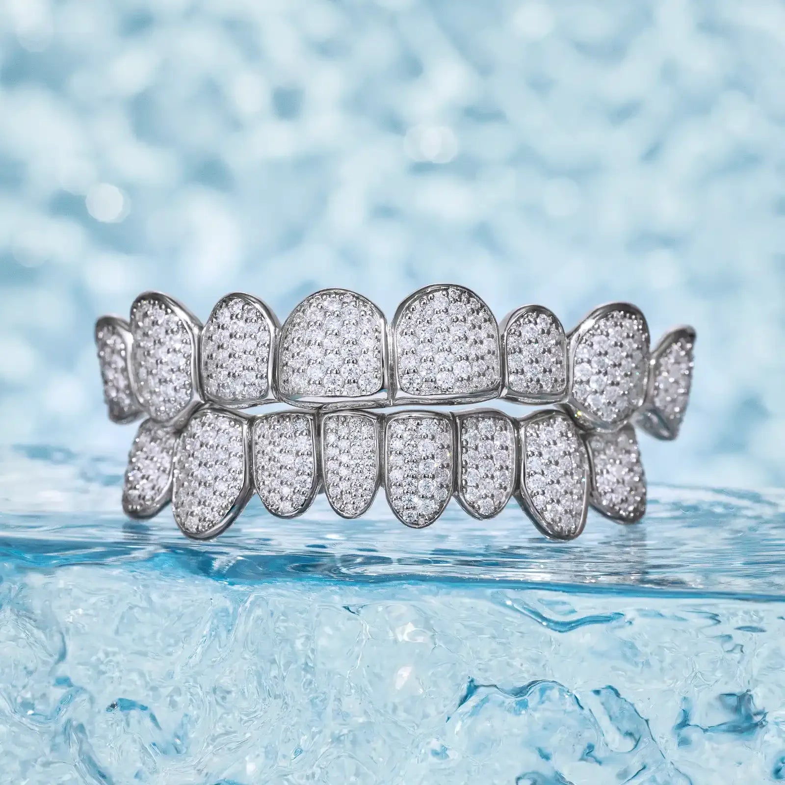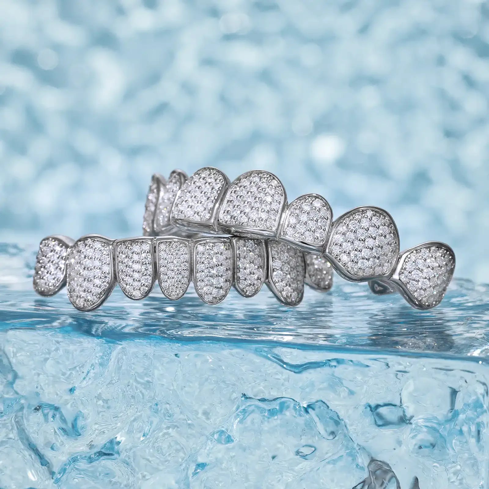 Pave/Honeycomb Moissanite Or Lab Hand-Setting Grillz Mesmerize with Pave/Honeycomb Moissanite Or Lab Hand-Setting Grillz—hand-crafted brilliance in every detail. The intricate honeycomb pattern showcases precision-set stones that sparkle continuously, delivering luxury and artistry combined. Custom-quality craftsmanship that commands attention. Pure sophistication.