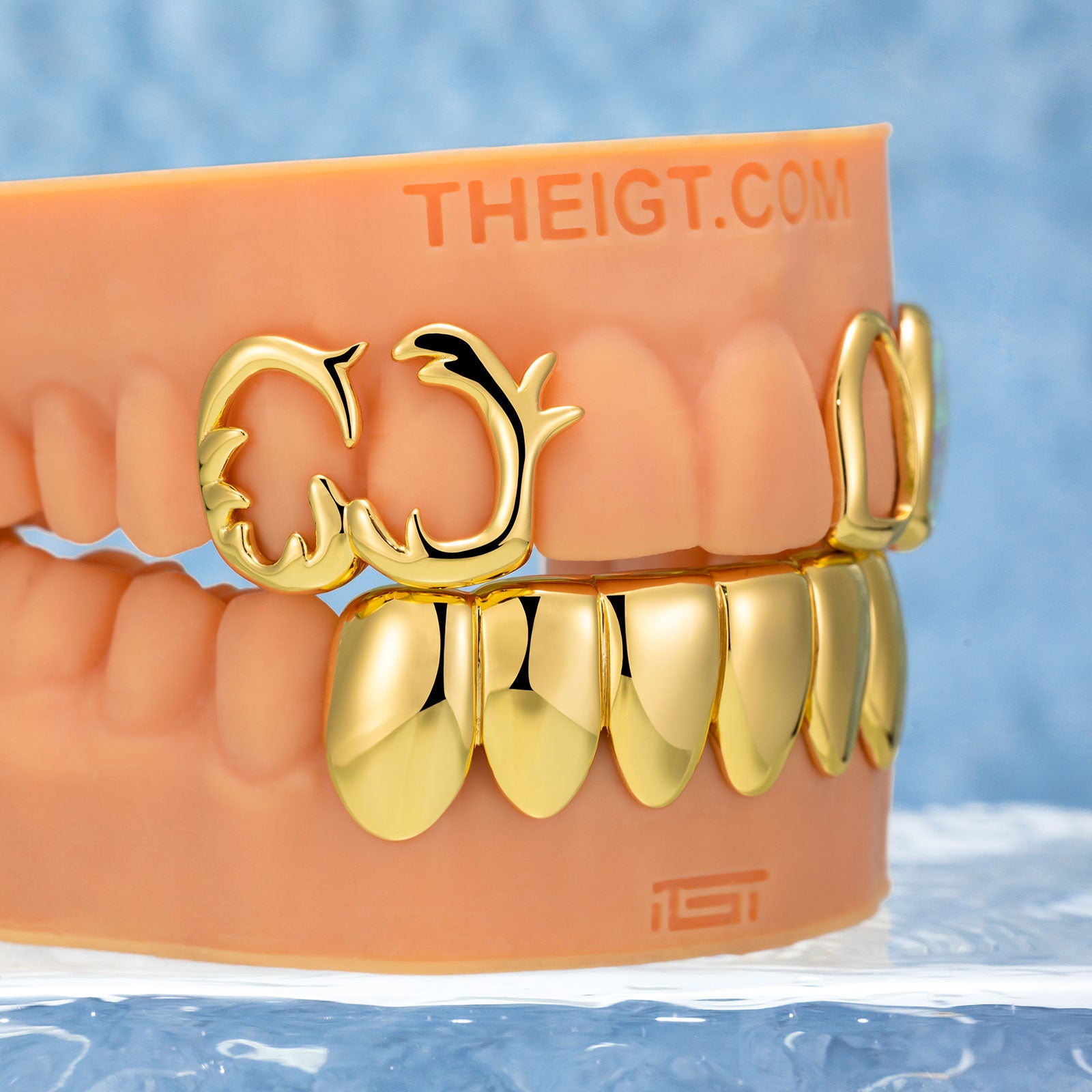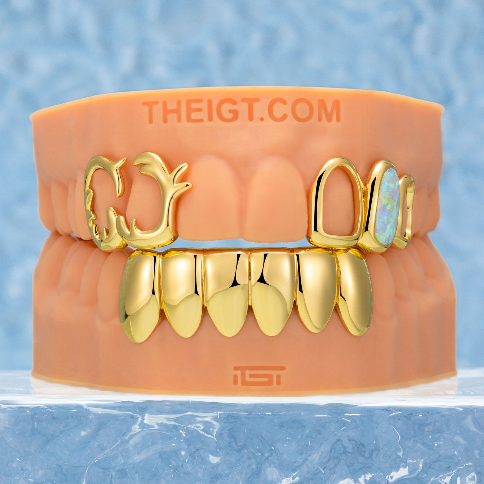 Make a statement with Wave & Opal Style Grillz. Their unique wave design with opal highlights adds bold luxury to your smile. Comfortable and eye-catching, they're perfect for standing out.