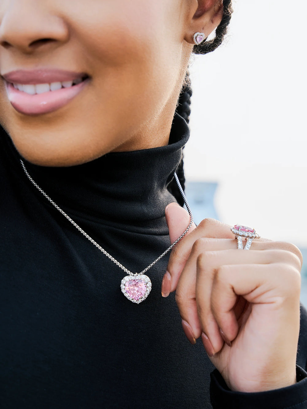 Moissanite Pink Gem Heart Shape Adjustable Necklace