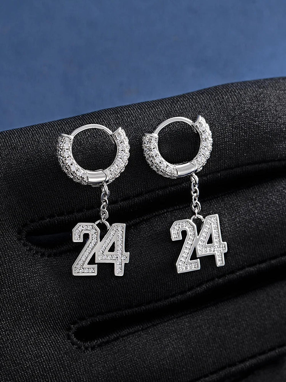 S925 Moissanite Iced Number Dangle Hoop Earrings